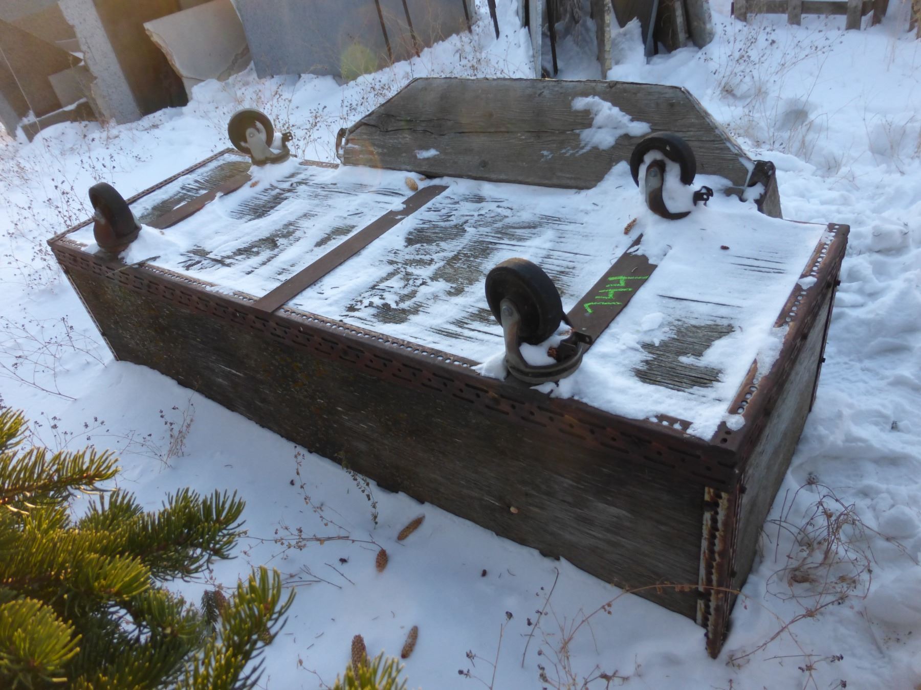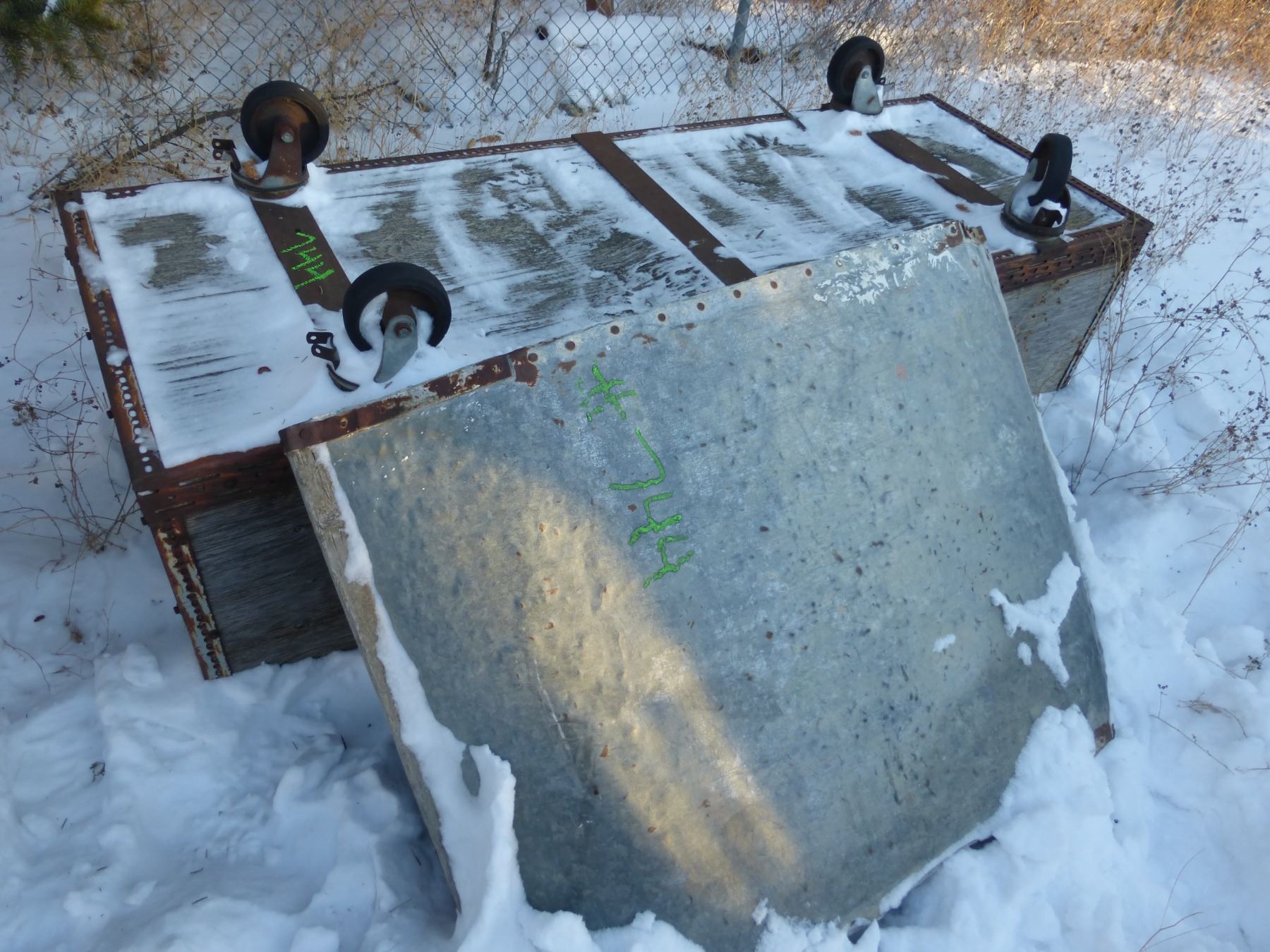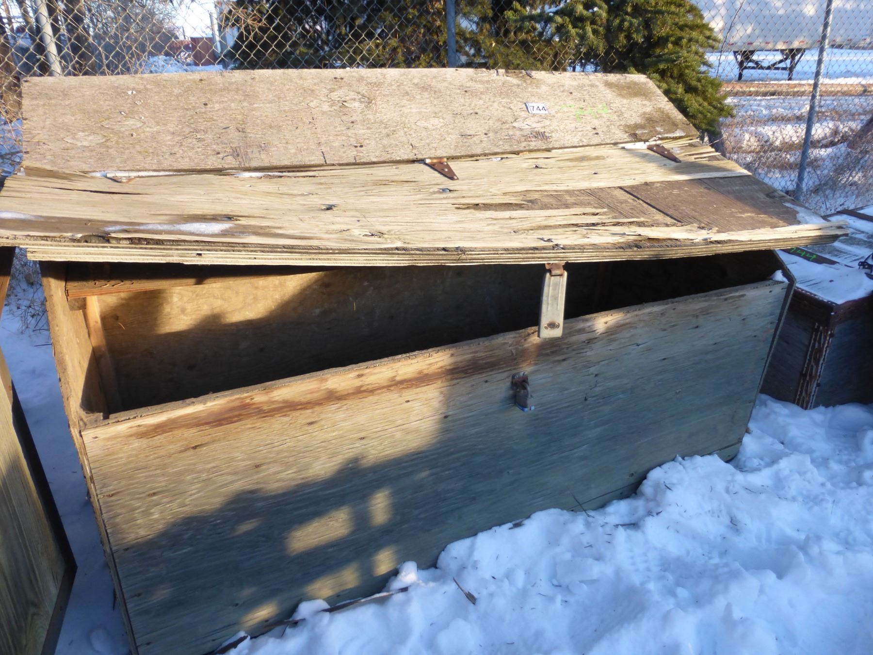 7' wooden job box on wheels, 1- 8' x 30" rolling wood box and Approx. 4' mixing tub