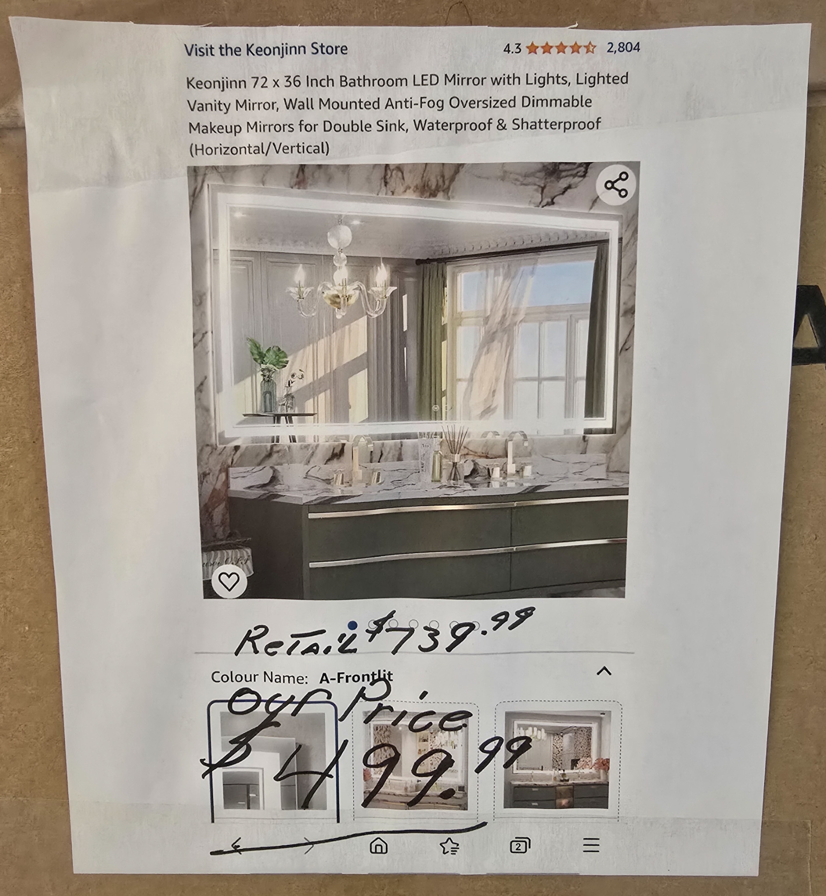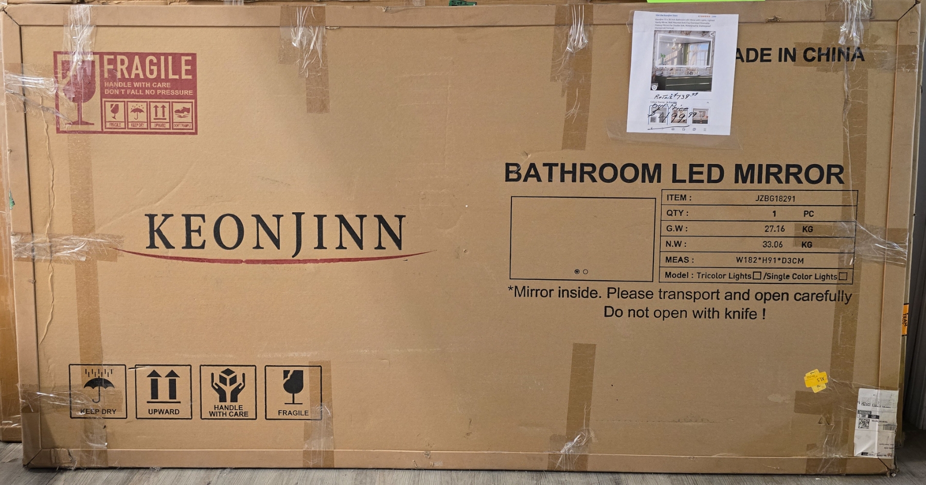 SOLD ON SELLERS APPROVAL, LIGHTED VANITY MIRROR, WALL MOUNTED ANTI-FOG, DIMMABLE, WATER AND SHATTER PROOF