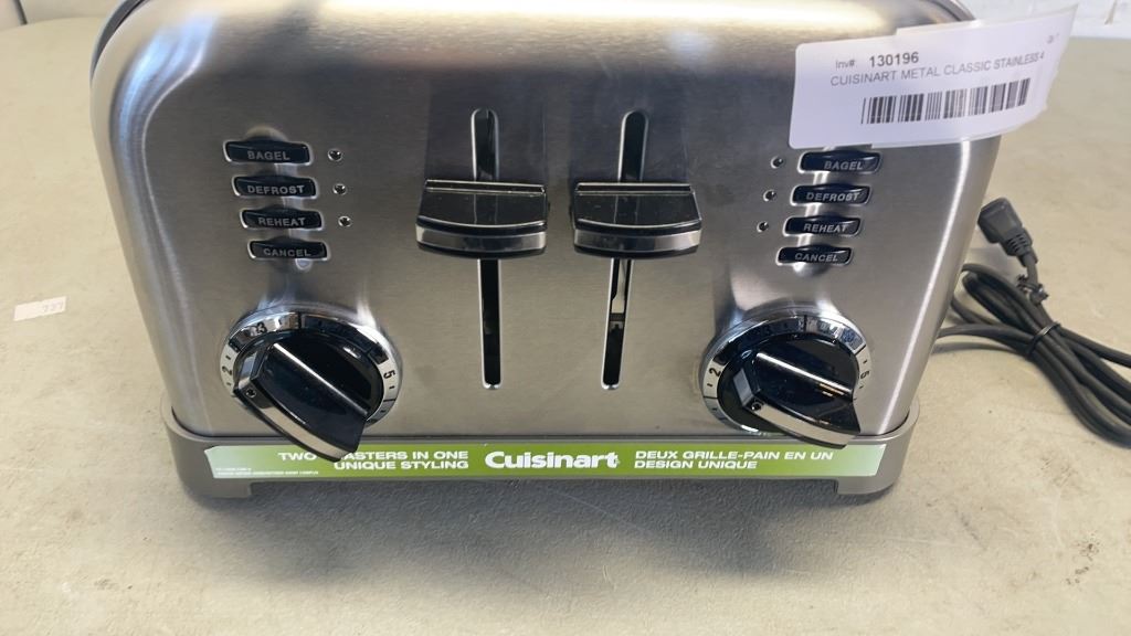 CUISINART METAL CLASSIC STAINLESS 4 SLICE TOASTER IN STORE DEMO NO BOX TESTED AND WORKING - RETAIL $139