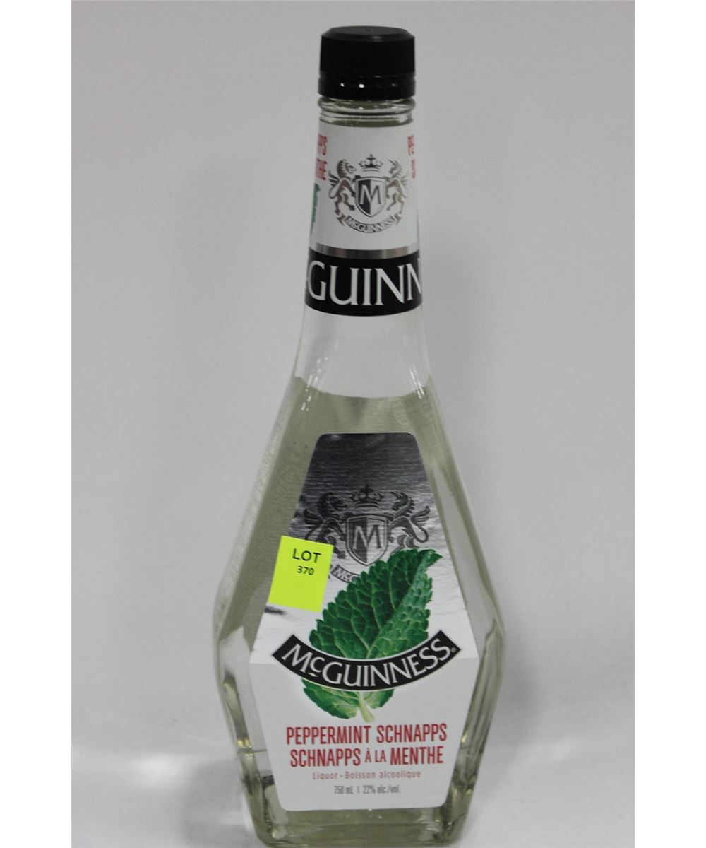 750ML BOTTLE OF MCGUINESS PEPPERMINT SCHNAPPS 22%
