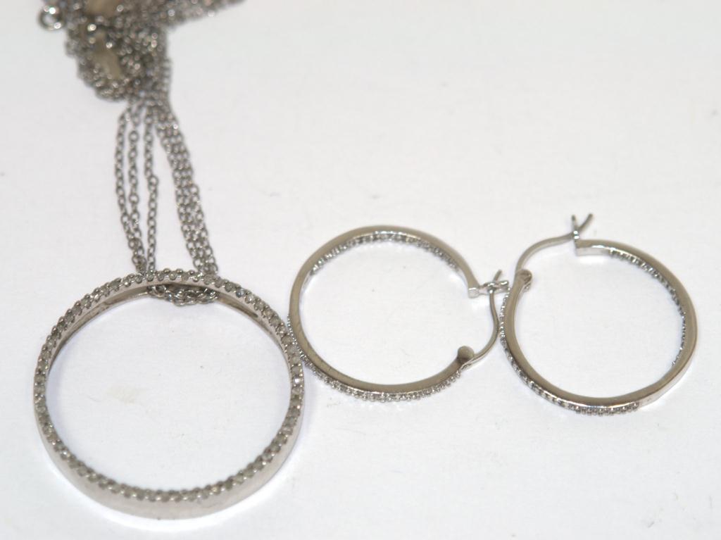 Total Retail $1,230 .925 Silver -- (#1) Retail Price $1,230 .925 Silver -- .75Ctw Diamonds Hand made Necklace & Earrings Hoops --