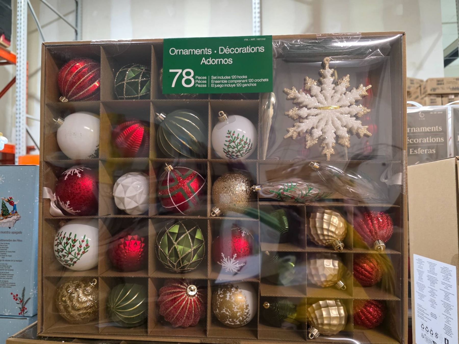 78-Piece Set of Green, Red and White Assorted Holiday Ornaments