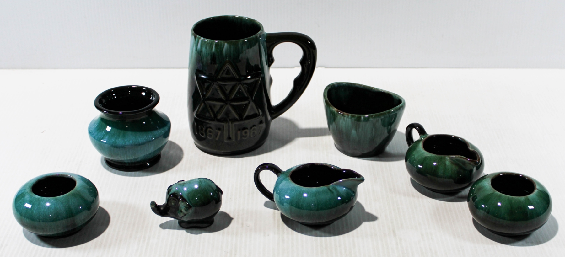 8 PC VINT. BLUE MOUNTAIN POTTERY MINI ELEPHANT CUP ETC.