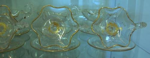 8 Turn Of The Century Moser Scalloped Hand Painted Sherbets With Underplates - Sold Each