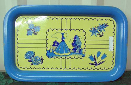 8 Vintage Metal Trays, Blue And Yellow Depicting A Victorian Woman With A Book