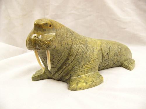 8" Walrus Soapstone, and Ivory Tusks by Eric Tepton 448f