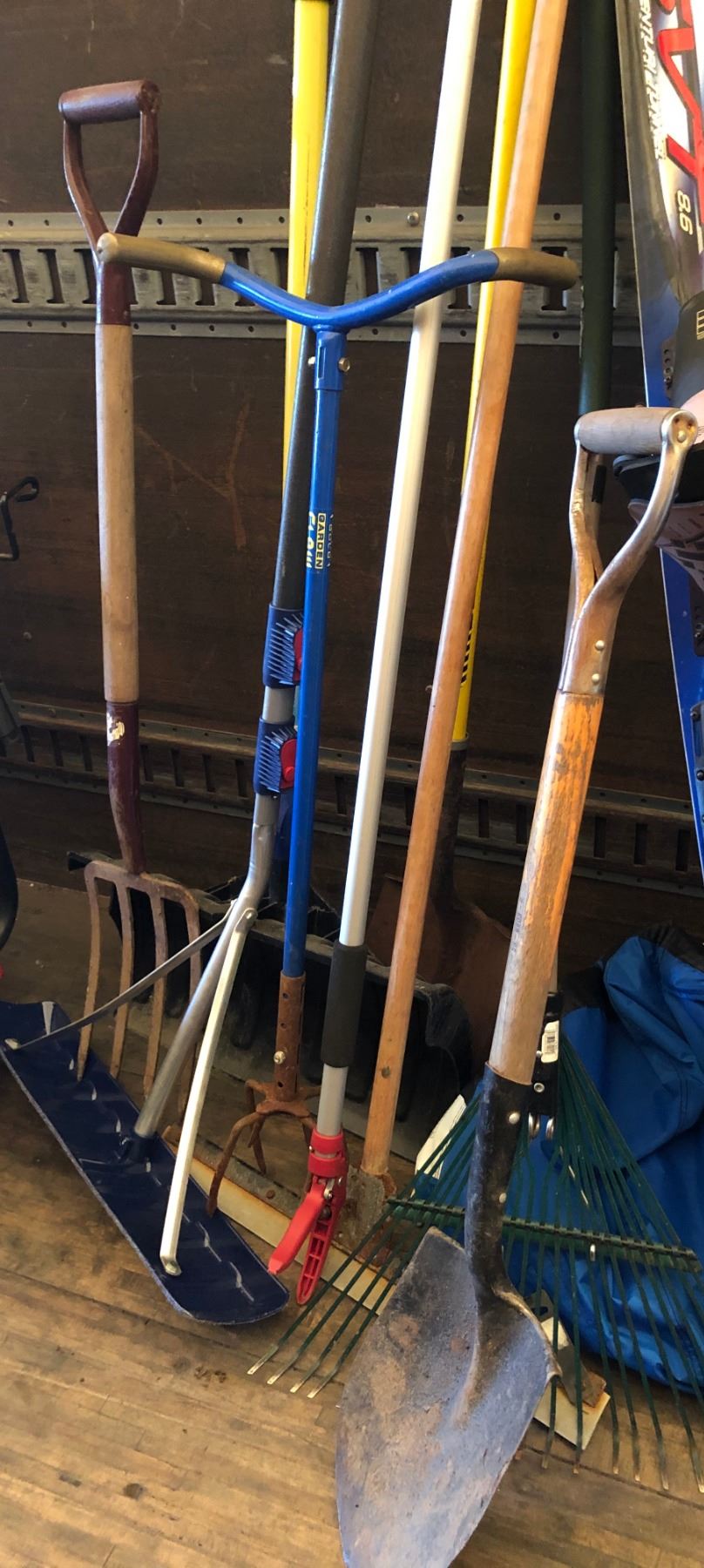 INCLUDES: ROOF SHOVEL, LONG & SHORT HANDLE SPADES, FORK, ETC.