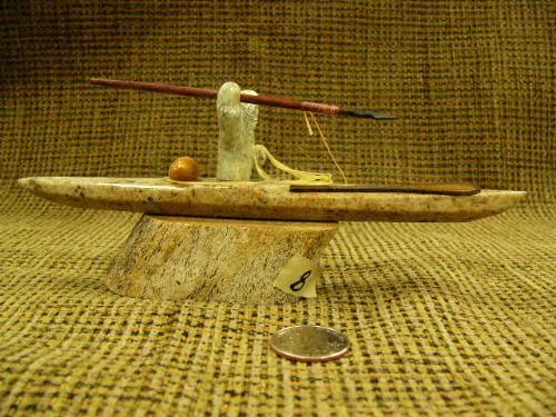 8"soapstone kayaker mounted on whale bone with harpoon (2)