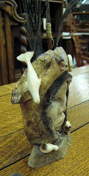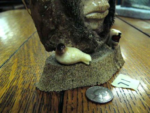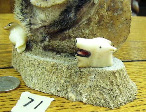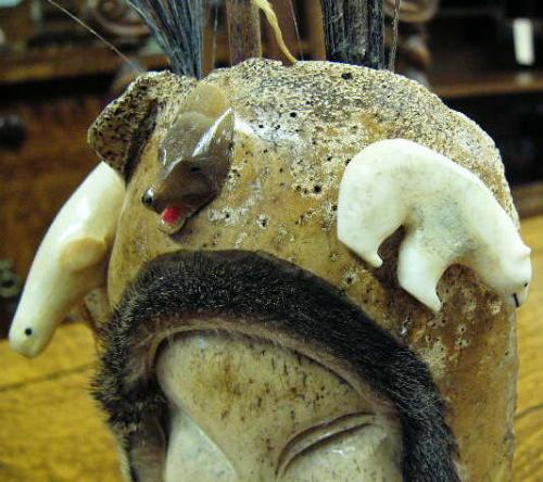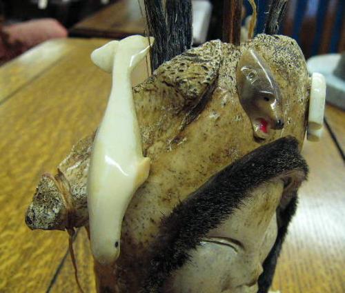 8" whale bone spirit mask with ivory seal, whale, bear by Aningayou (2)