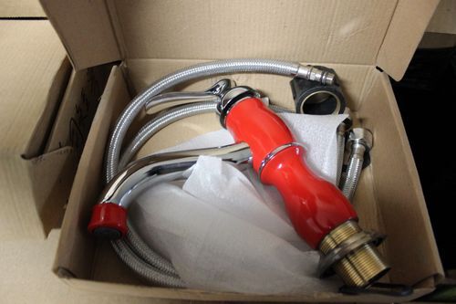 8077 RED AND CHROME BATHROOM VANITY FAUCET