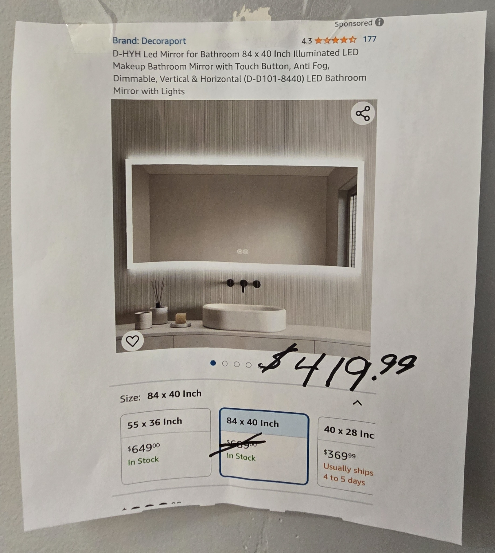 SOLD ON SELLERS APPROVAL, ANTI-FOG, DIMMABLE WITH TOUCH BUTTON