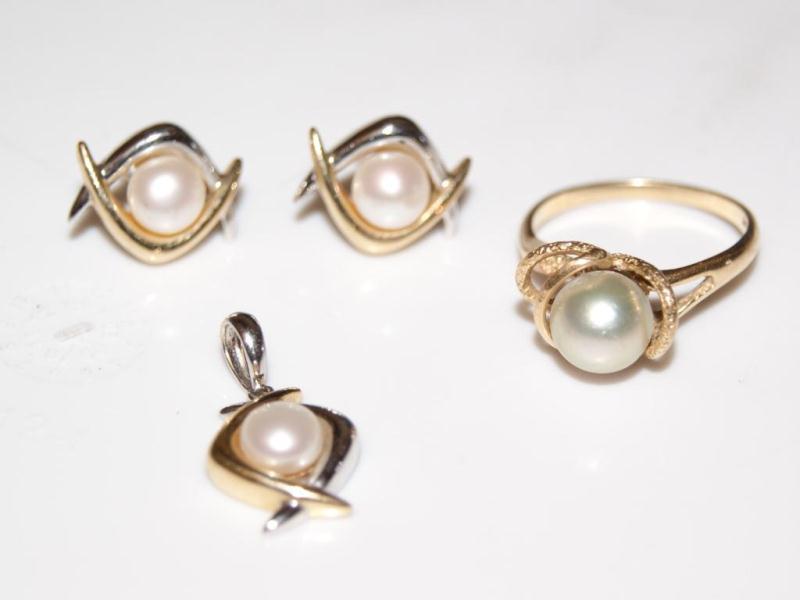 times The Money Retail Value $3,160 14Kt Yellow Gold -- 9.00mm Gray Pearl Free Form Ladies Ring -- Retail Value $1,840 14Kt White & Yellow Gold -- 4.00mm White Pearl Ladies Pendant -- Retail Value $2,320 14Kt White & Yellow Gold-- 4.00mm White Pearl Ladies Earrings --