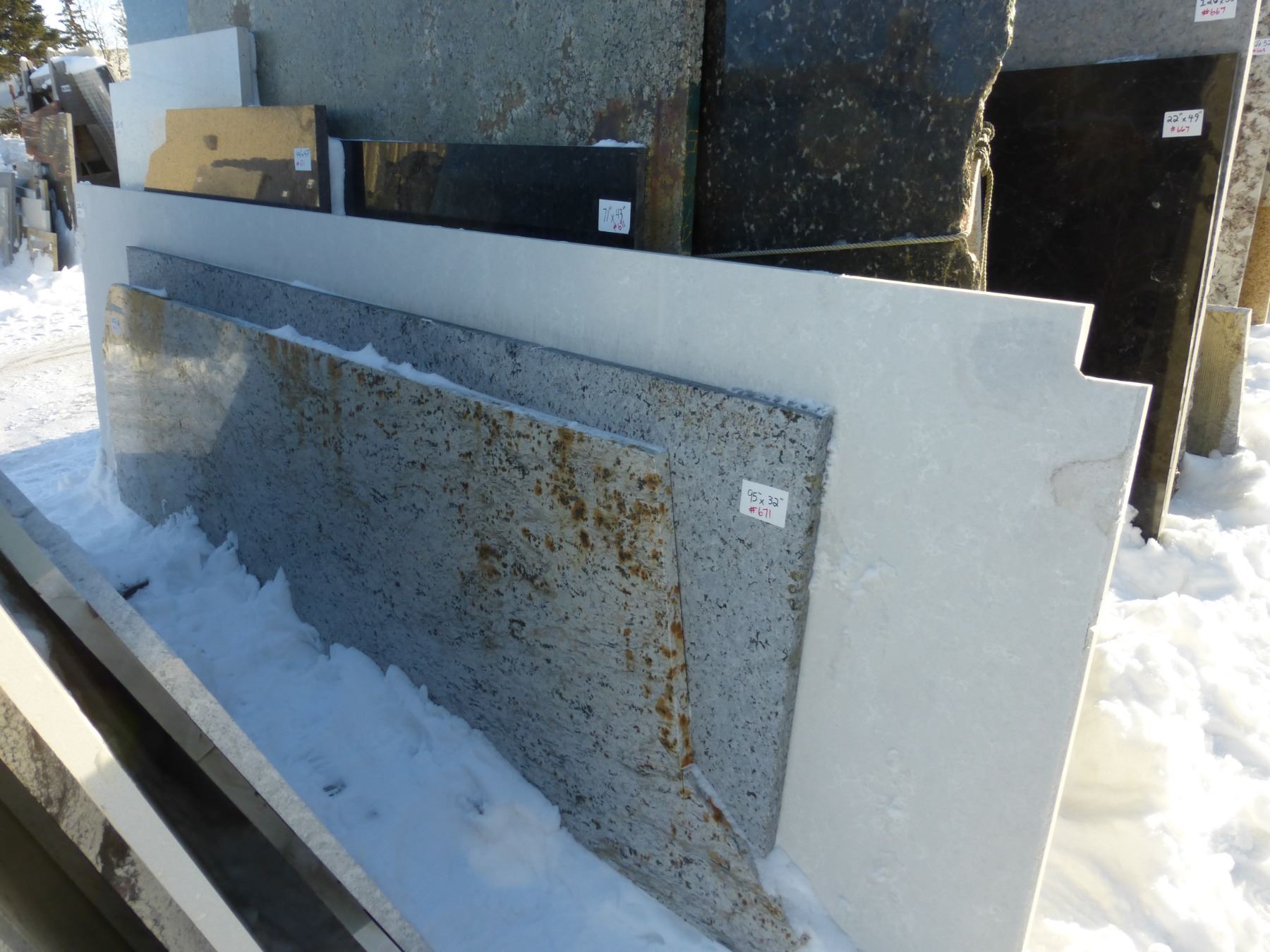 9- Slabs, Various sizes x 1 1/4" thick, Granite and Quartz (various colors)