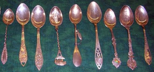 9 Sterling Demi Souvenir Spoons; St. Louis Expo, Mt. Rushmore, New Orleans 1900-20, Eureka Ca. 1890-1920, Eureka City Hall, Boulder Dam, Naval Review, Dartmouth, Portland, 1890-1920, Banff And 2 Plate Spoons - 1904 St. Louis Expo & 1898 Battleship Maine