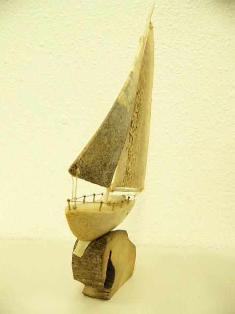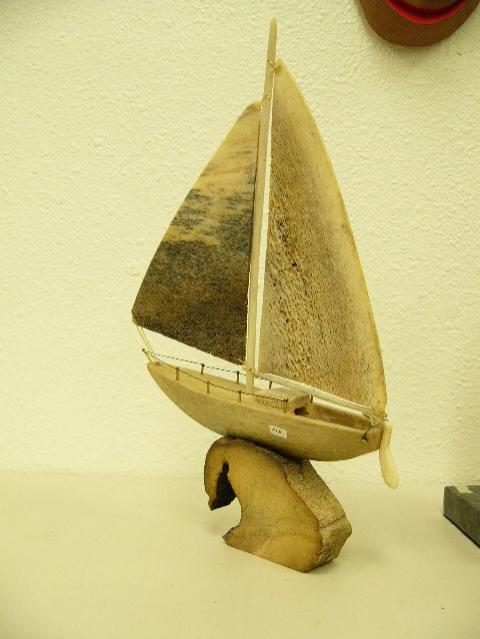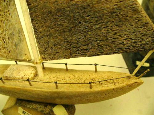 9" long 11" high whale bone sailing boat mounted on old whale bone base by Vanessa Moovy (25)