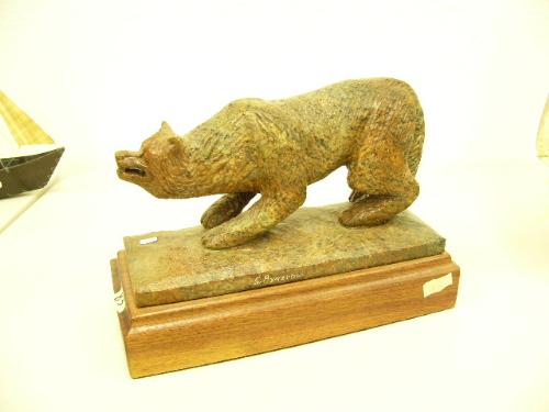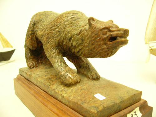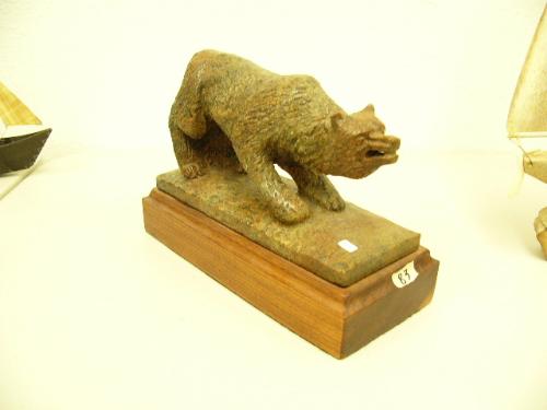 9" soapstone bear by Steve Byazlov mounted on walnut wood base - all fur is carved (25)