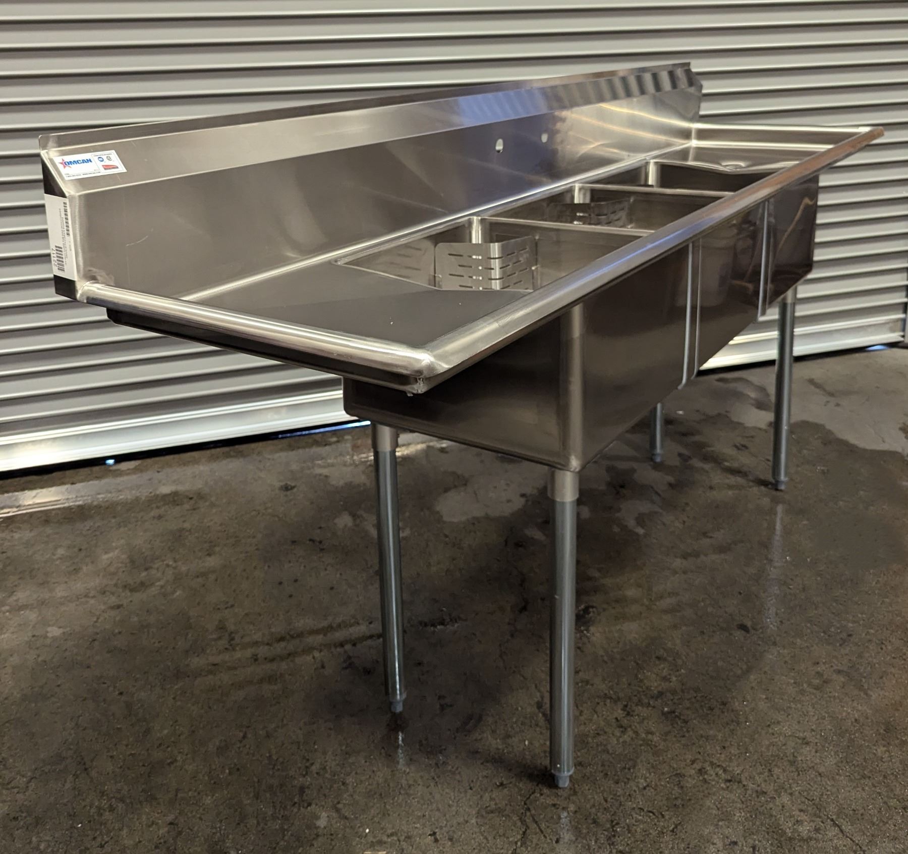 90" x 24" Three Tub Two Drain Boards Sink, Omcan 22117| R9FL