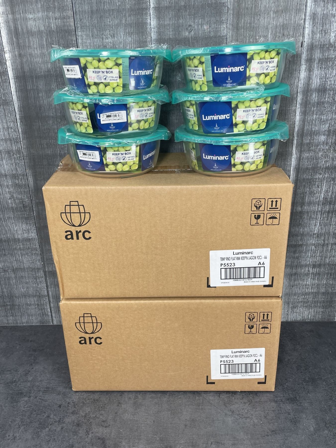 920ml Glass Round Keep N Boxes, Arcoroc P5523 - Lot of 18 (3 cases) | R8-1
