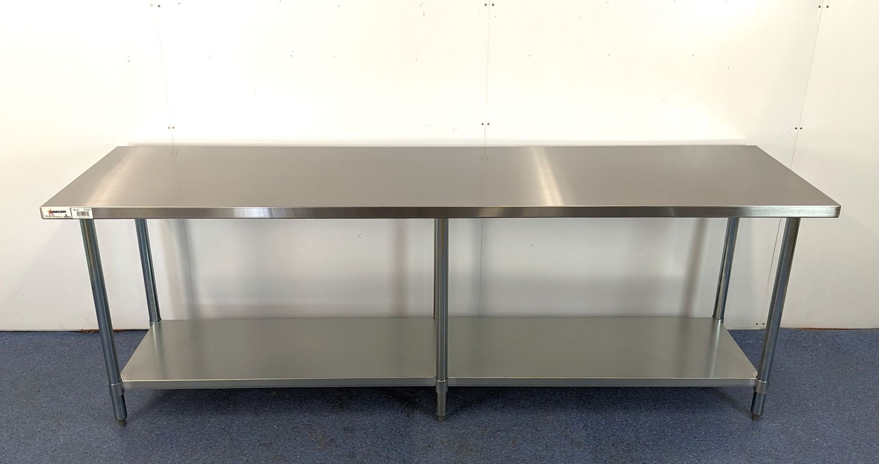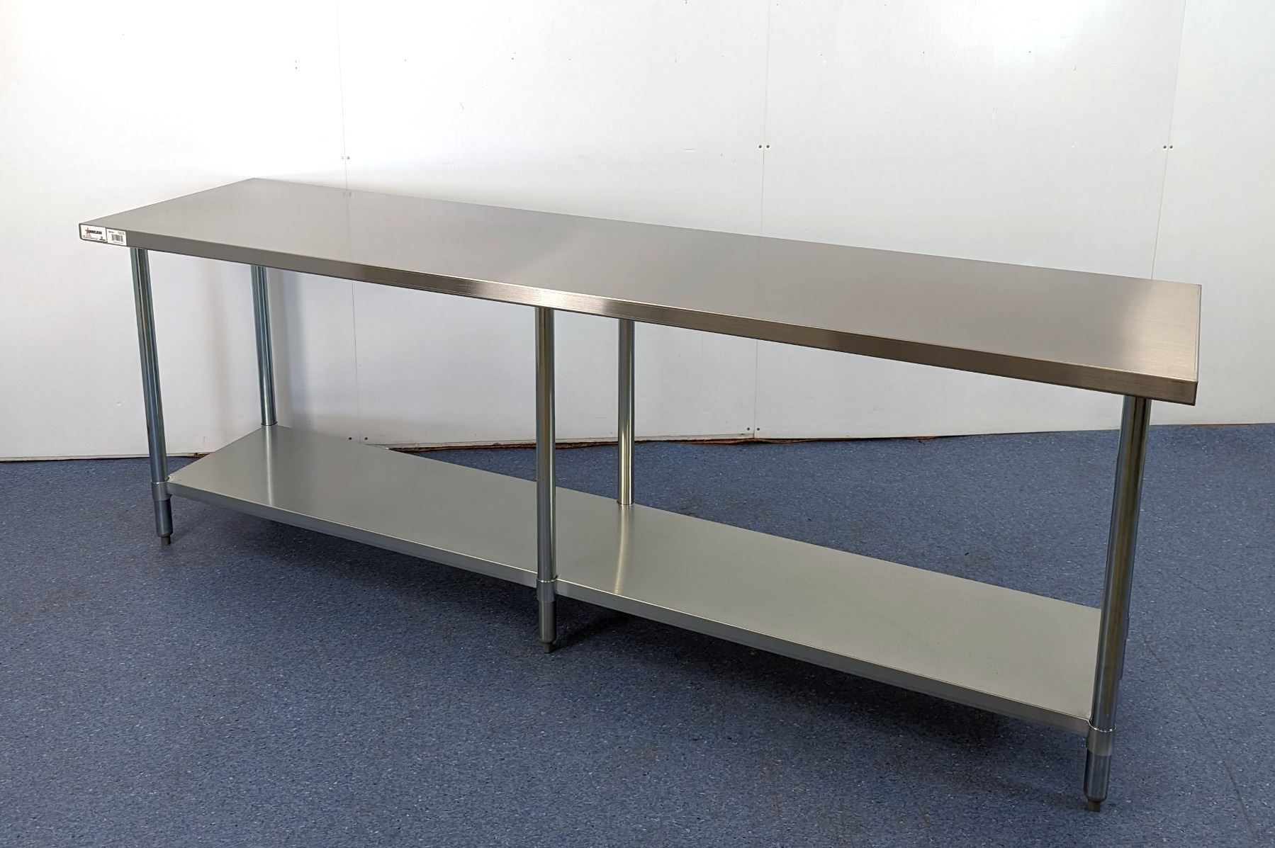 [New in Box,] 18 Gauge 430 Stainless Steel, Top Load Capacity: 1102lbs, Undershelf Capacity: 463lbs, Fully Adjustable Undershelf, Plastic Bullet Feet (34" Height Adjustable from 33.5" to 34.5",) Galvanized Legs