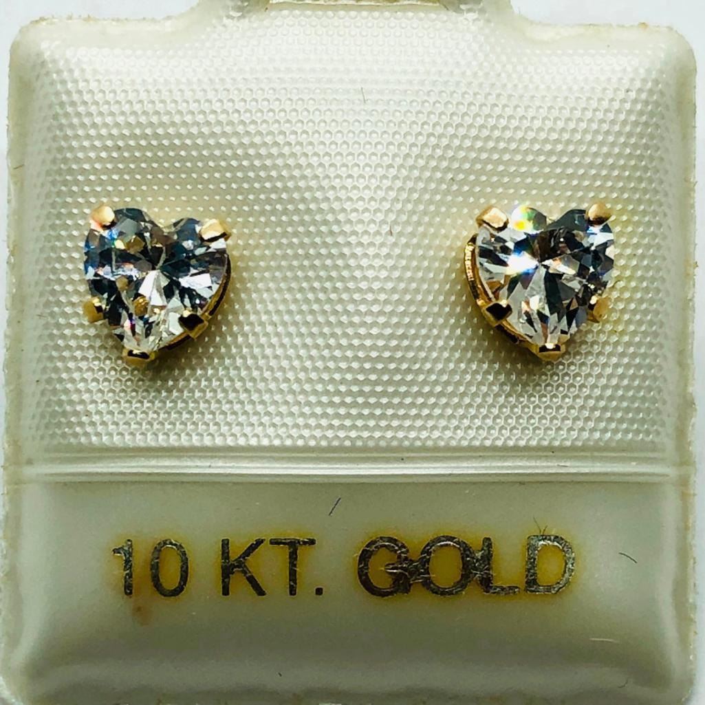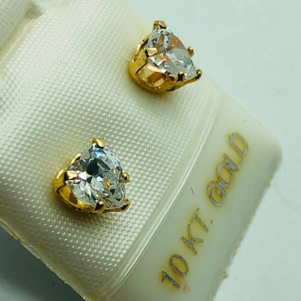 9K Yellow Gold Cubic Zirconia Heart Shaped Earrings, Suggested Retail Value $160