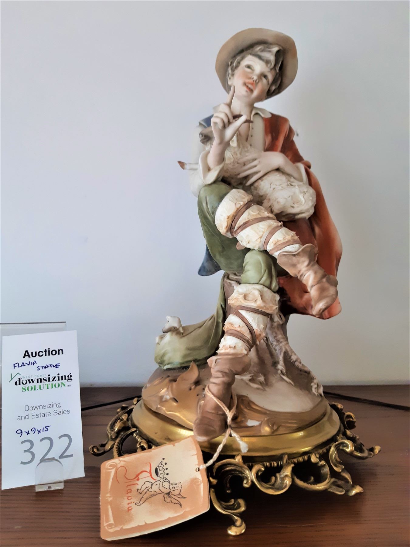 Boy with goat figurine with COA. 9x9x15. Pick up 9-10
