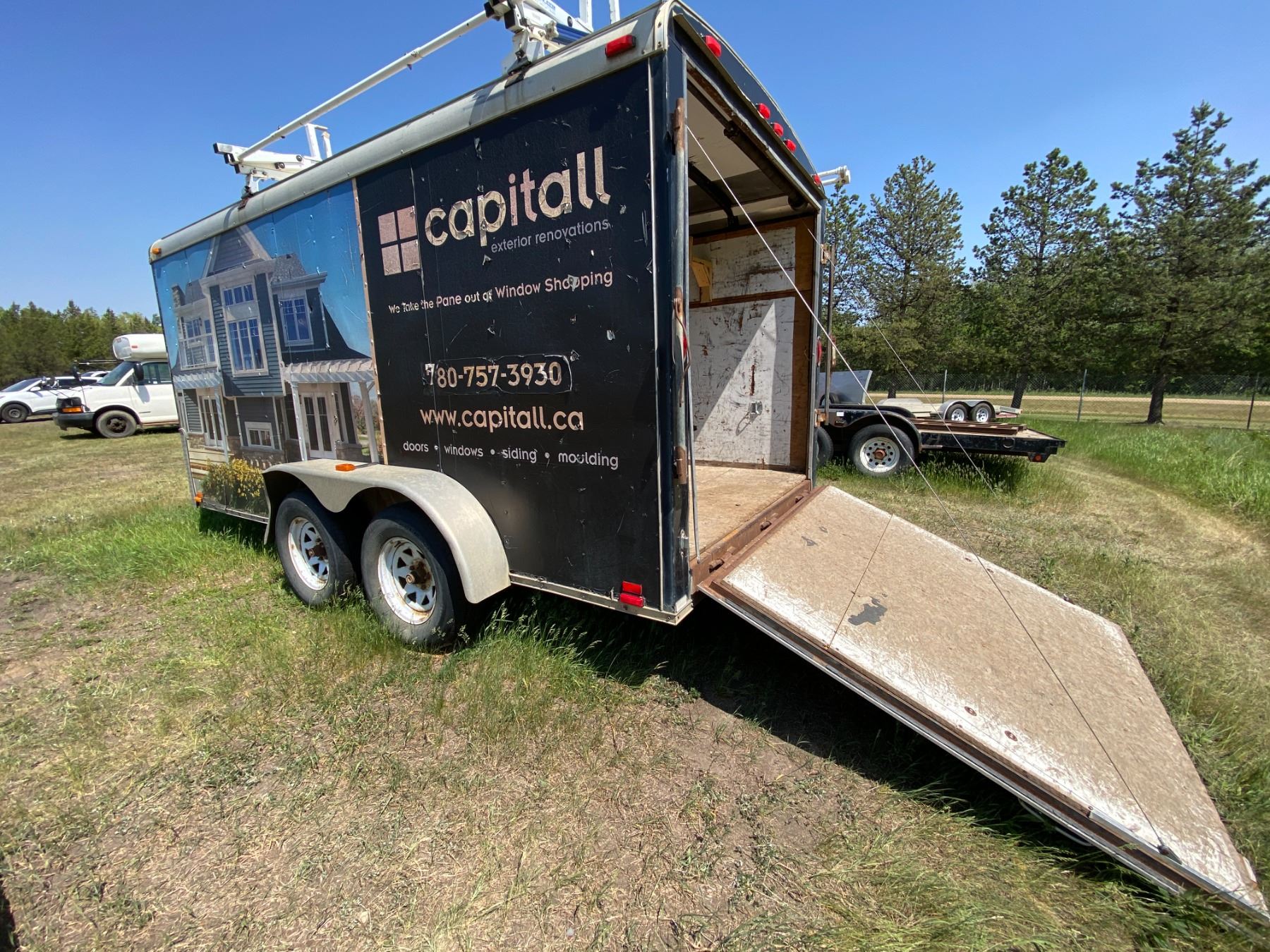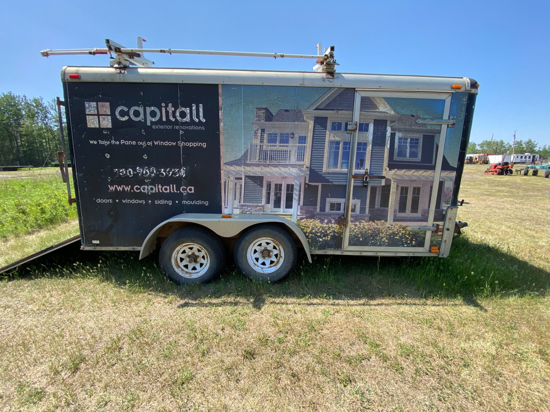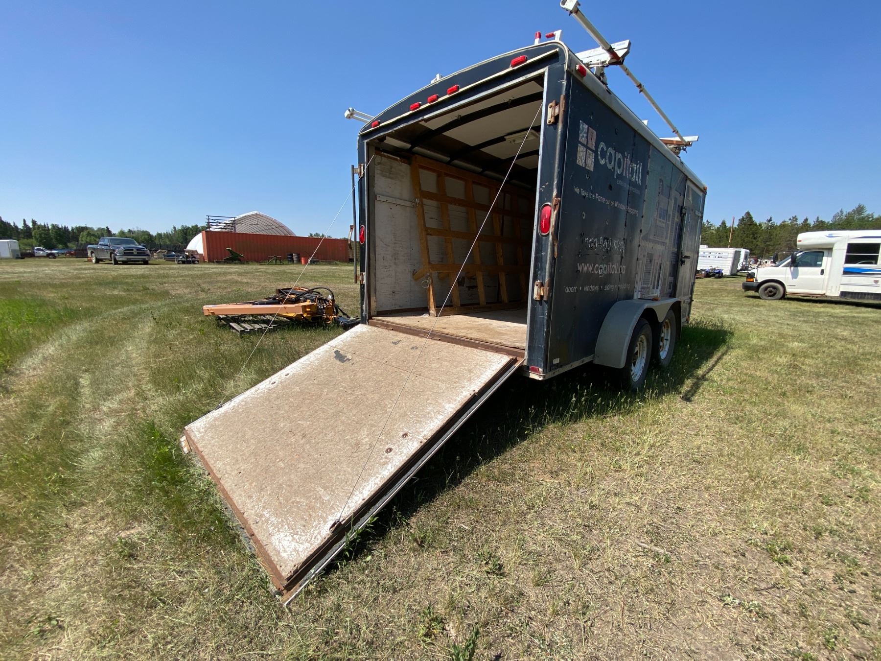 A-9 2005 Atlas 14 ft Enclosed tandem Axle trailer , side door & fold down Rear Door, inside Racks, Roof Racks,approx 3500lb Axles vin number 5HCKU142X5E004304