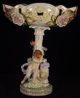, with raised floral ornamentation, featuring a cherub at the base of the column, height 19 3/8", Germany, circa early to mid 20th C.
