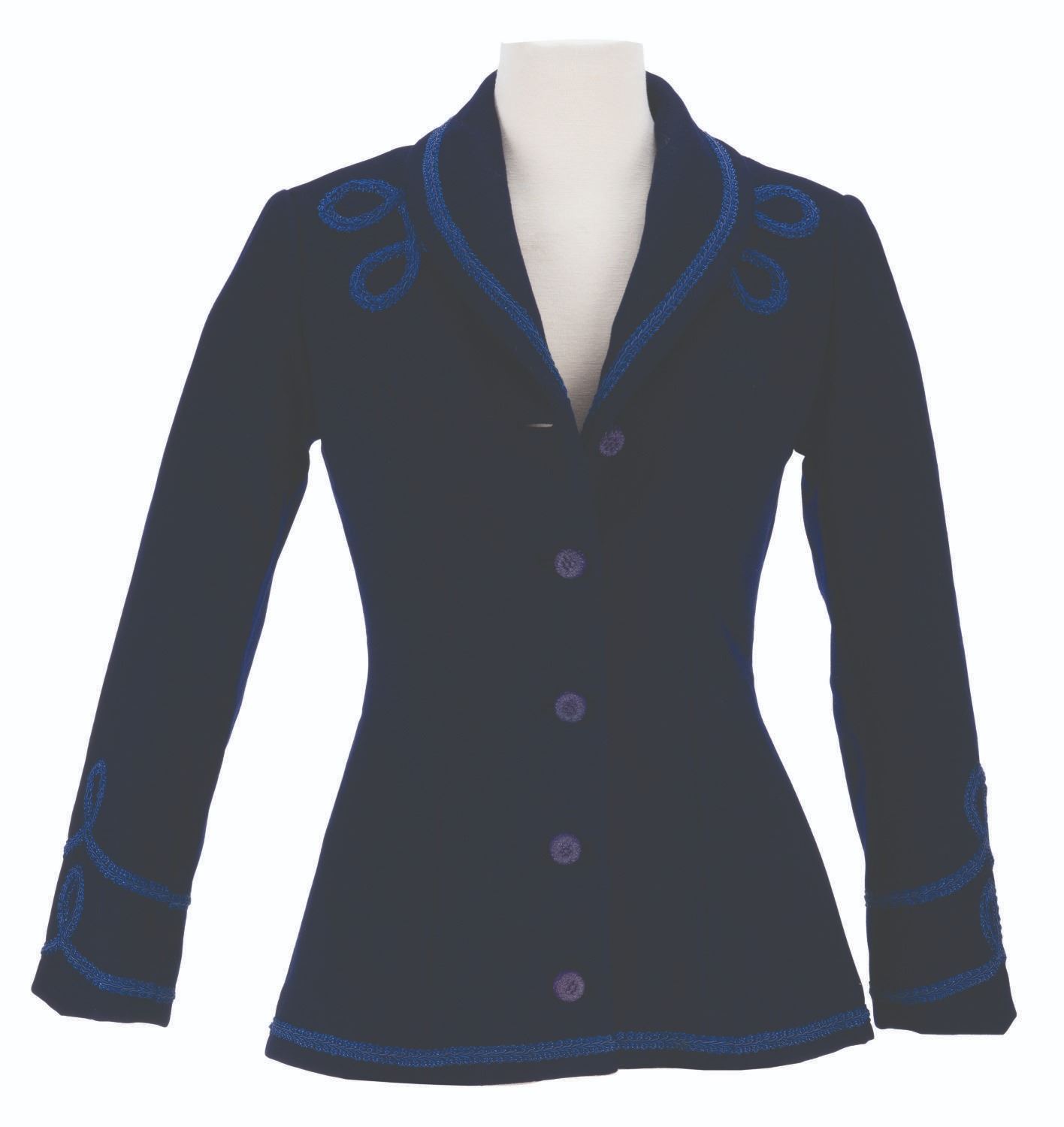 (Disneyland, 1980s) A coat with embroidery worn by Cast Members working in Fantasyland at Disneyland. Labeled a size 10, the coat is in very good condition with light pilling and wear.
