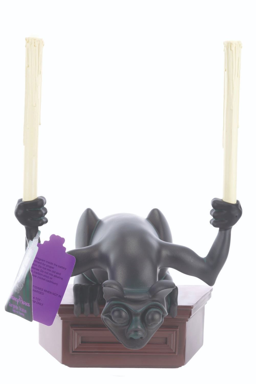 (Disney Parks, 2020) A Haunted Mansion light-up gargoyle figure, modeled after those seen in the Mansion's Stretching Portrait Room Gallery. With three AAA batteries (not included), the faux candles light and flicker. Measuring 9" x 8.25" x 14.25" tall, the figure displays in fine working condition and comes in the original box.