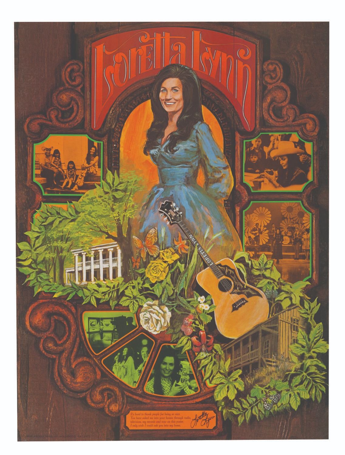 (Jimini Productions, 1971) An incredibly rare Loretta Lynn poster featuring moments from her life, spanning from childhood to her televised performances. Measuring 16.5" x 22", the poster of the Country Music Hall of Famer is in very good condition with light creases and wear.