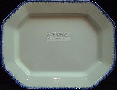 , 16 ½" x 13", with cobalt blue "blanket stitch" border, English, mid 19th C. Condition: hair line visible from rim.