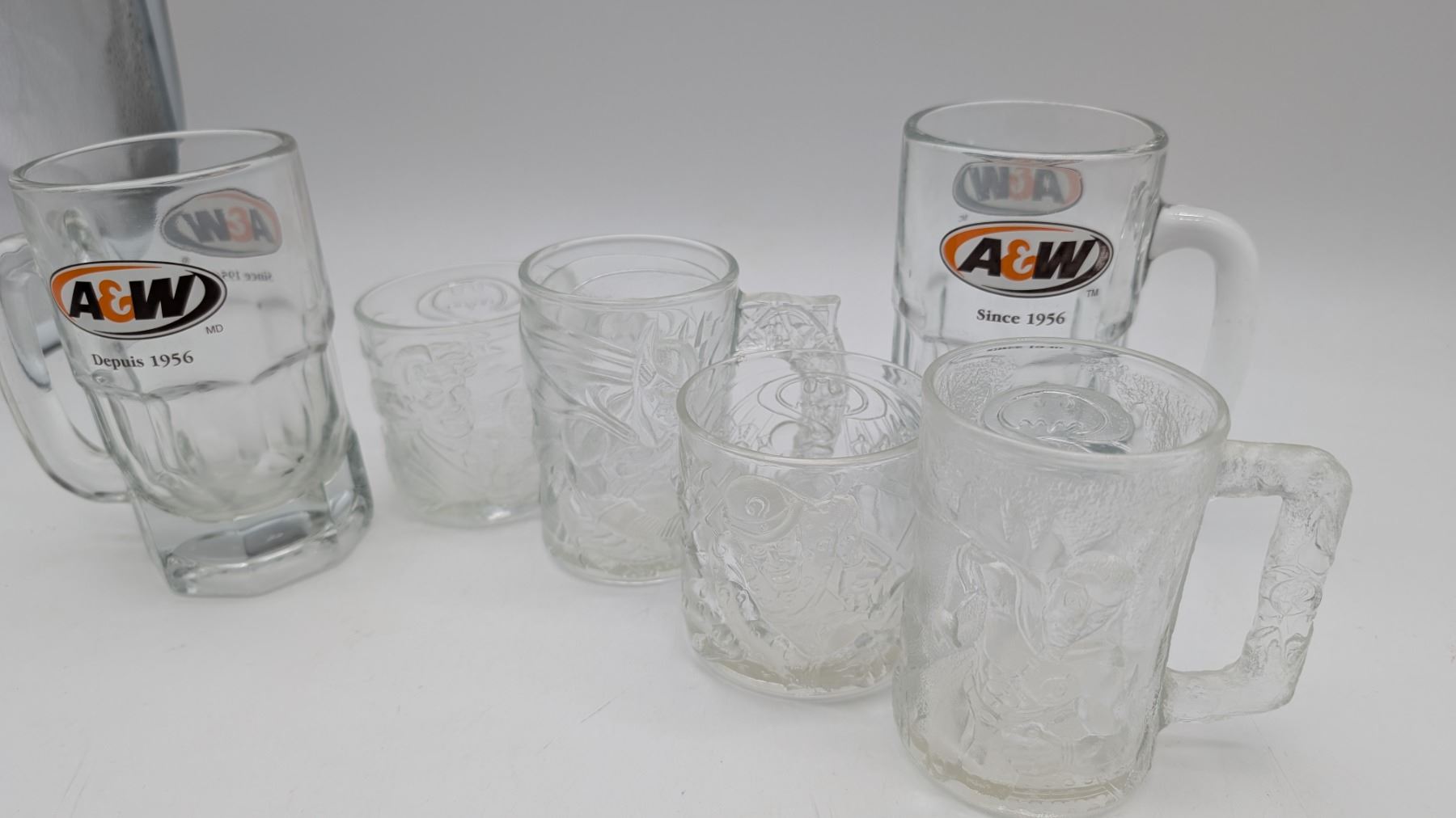 A&W branded mugs and Mc Donalds Batman Forever temed collectors glasses