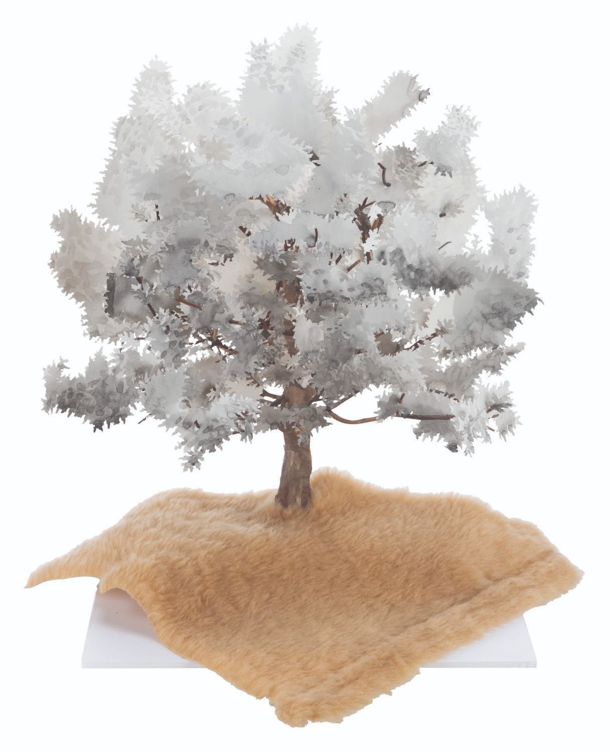 (Canon, 2011) A handcrafted tree prop used for the poster of the short film “When You Find Me,” directed by Bryce Dallas Howard for Canon’s Project Imaginat10n Film Contest. Kangmin Kim, Alumni and currently the director of CalArts Experimental Animation Department, built this tree, which was photographed by surrealist Jerry Uelsmann. Measuring 14” x 14” x 16.5” tall, the mixed media tree displays in very good condition with wear from production use. This item requires special shipping arrangements. Please inquire before bidding.