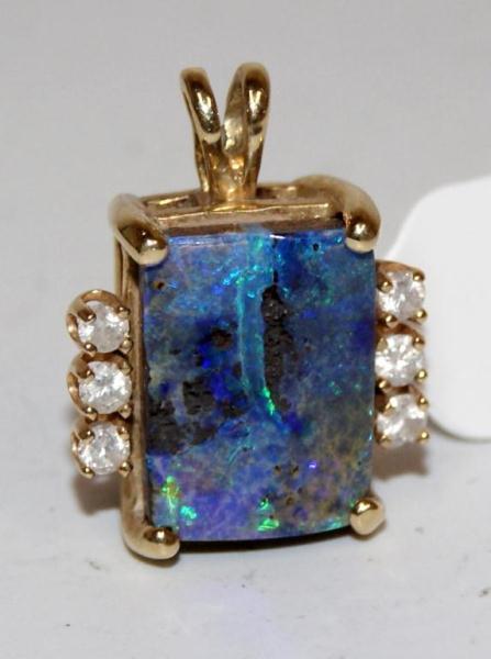 Retail Price $3,740 14Kt Yellow Gold -- AAA Australian Black Opal & Diamonds Ladies Pendant --