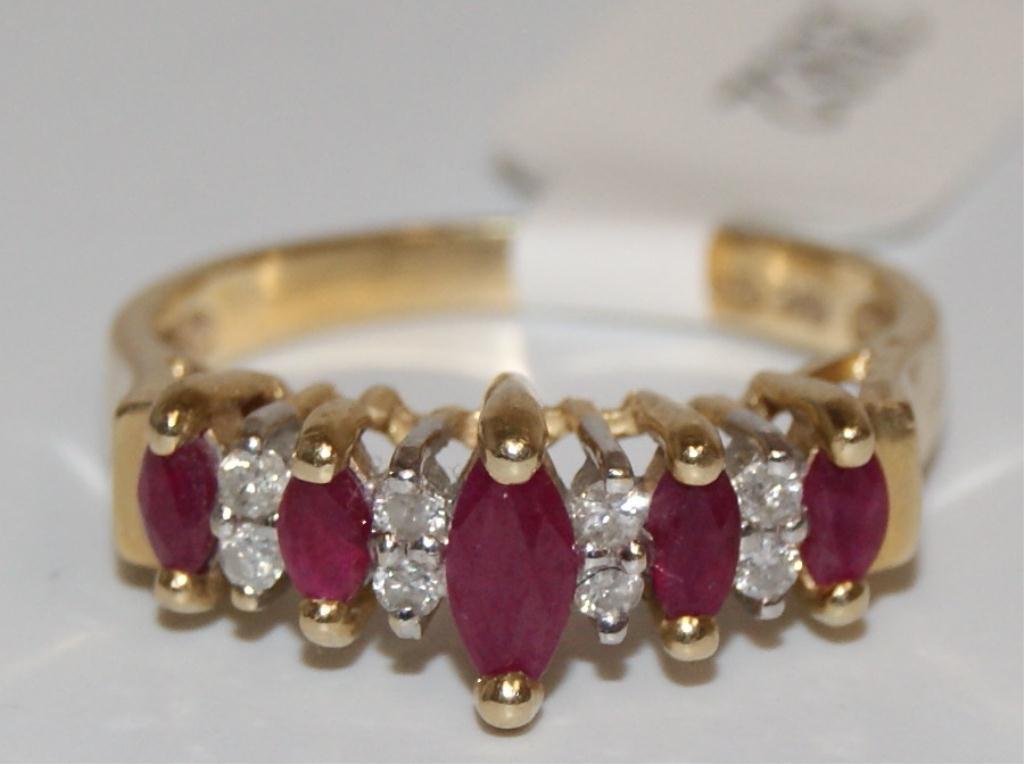 Retail Value $2,370 14Kt Yellow Gold -- AAA Burmese Ruby & Diamonds Marquise Ladies Ring --