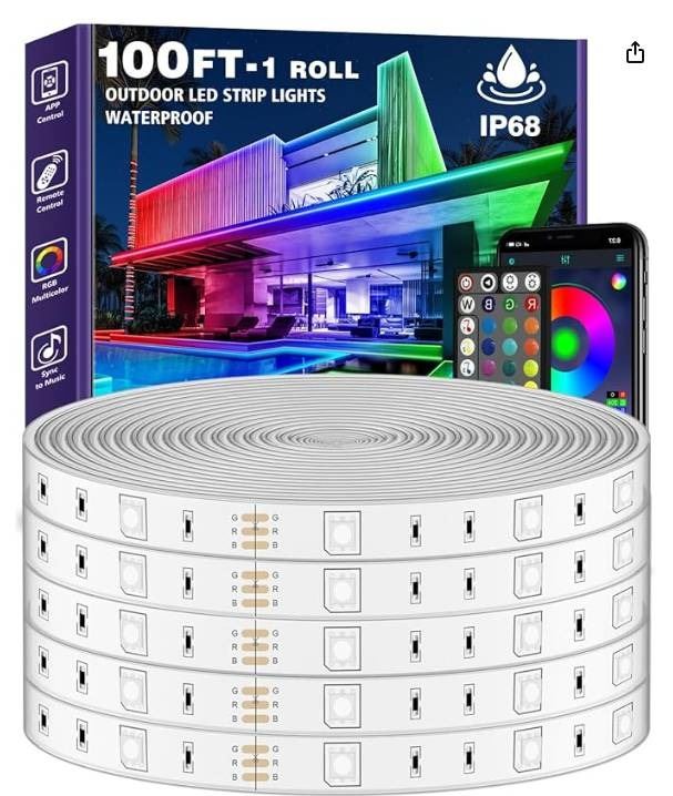 AILBTON 100ft Outdoor LED Strip Lights, IP68 Waterproof, Multi-Color, with App Control