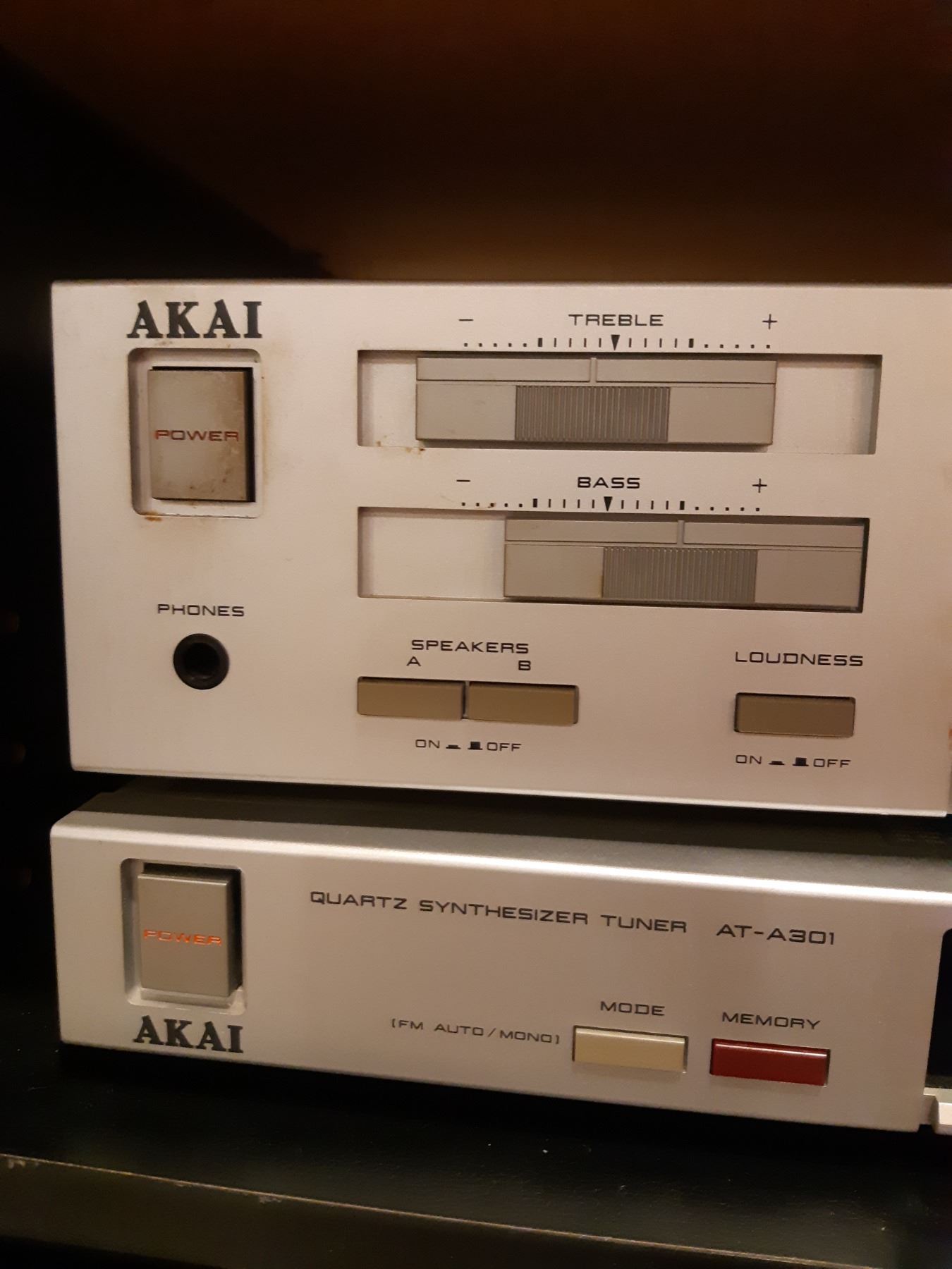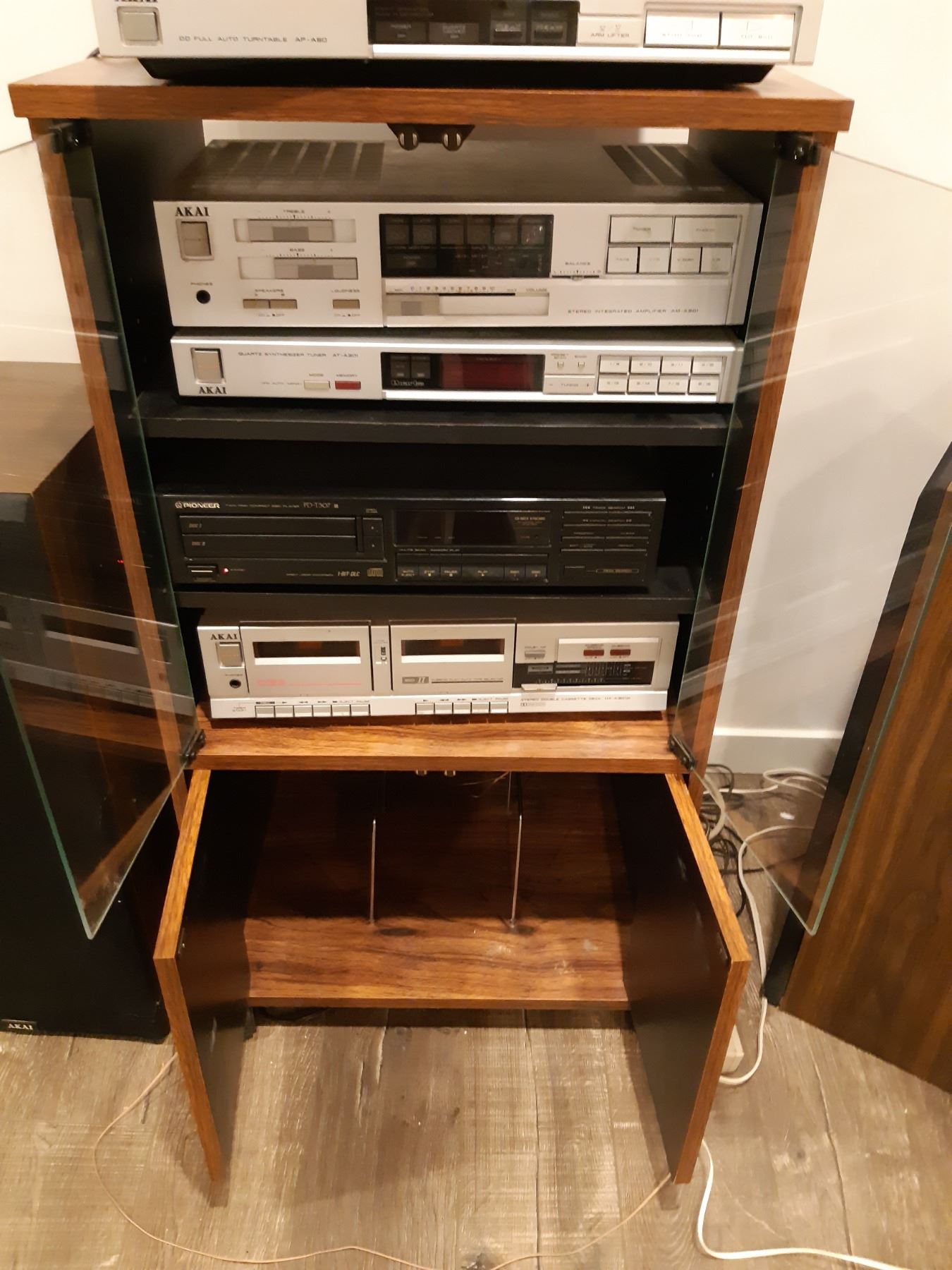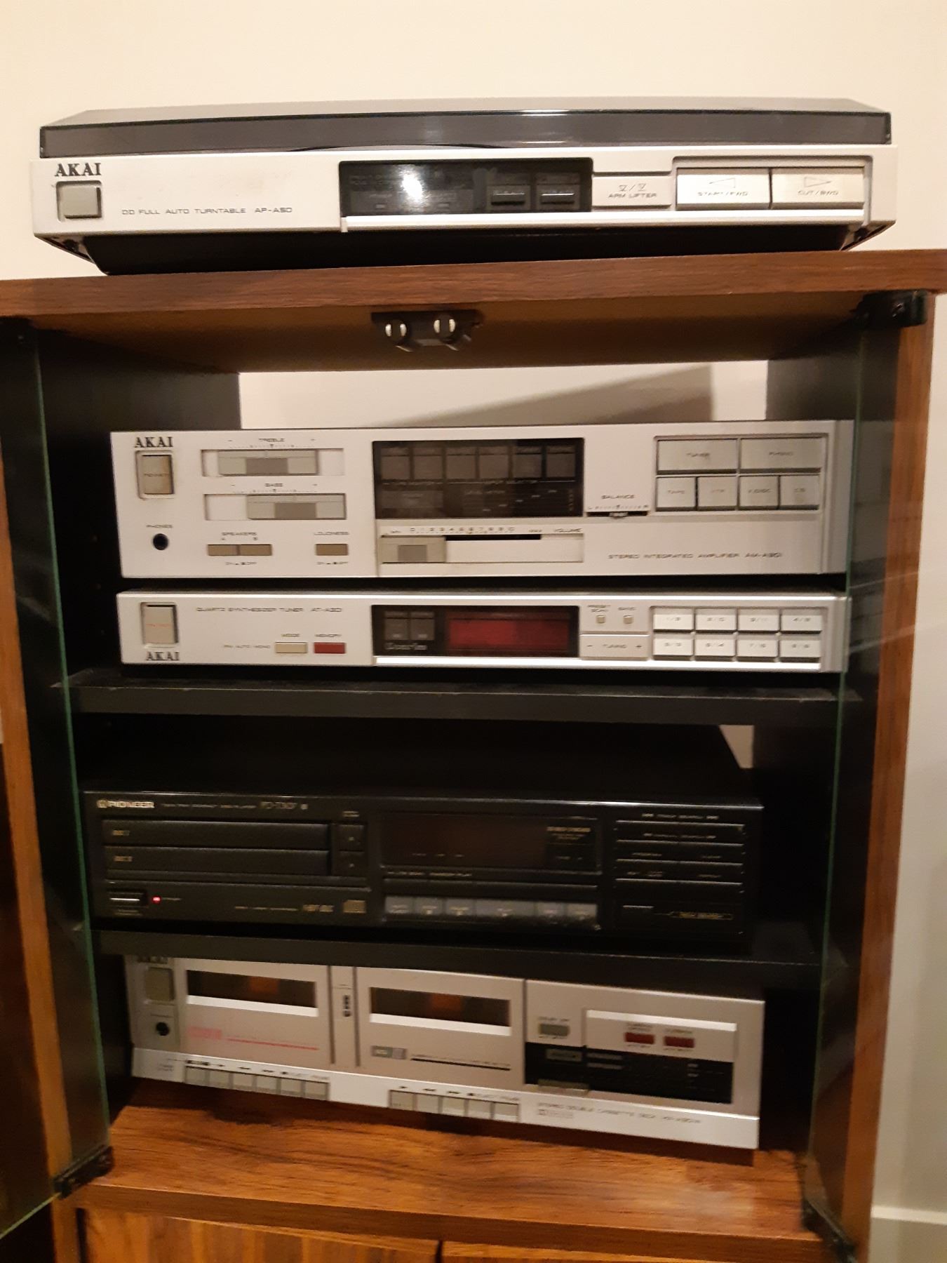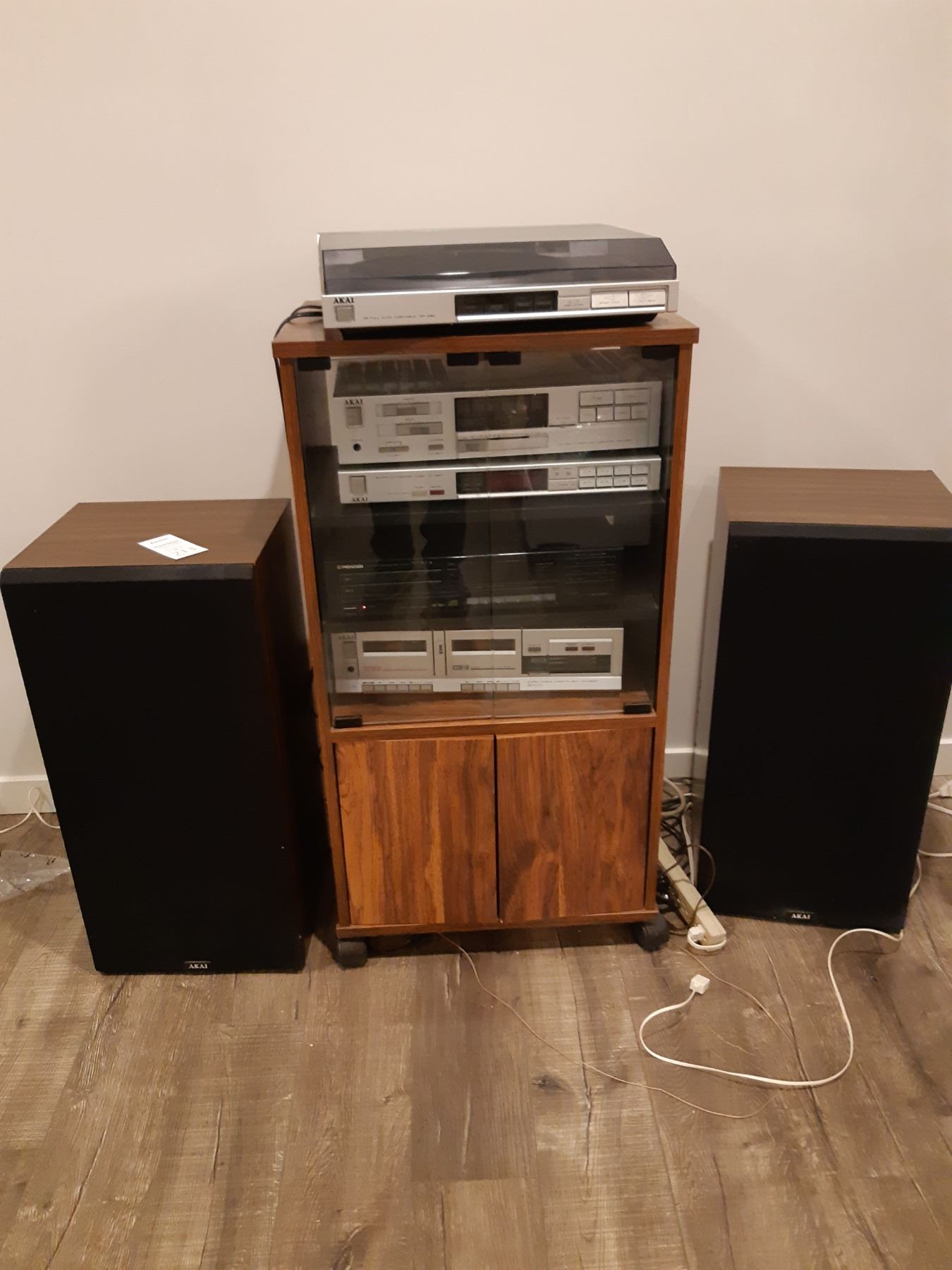 Akai Turntable, Amp, Tuner & Speakers & Pioneer DVD player Cabinet optional. Pickup at 11 am