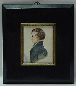 , circa 1810-1830, "Untitled", (miniature portrait of a young man facing left, watercolour, image 2 ¾" x 2 ¼', unsigned, framed.