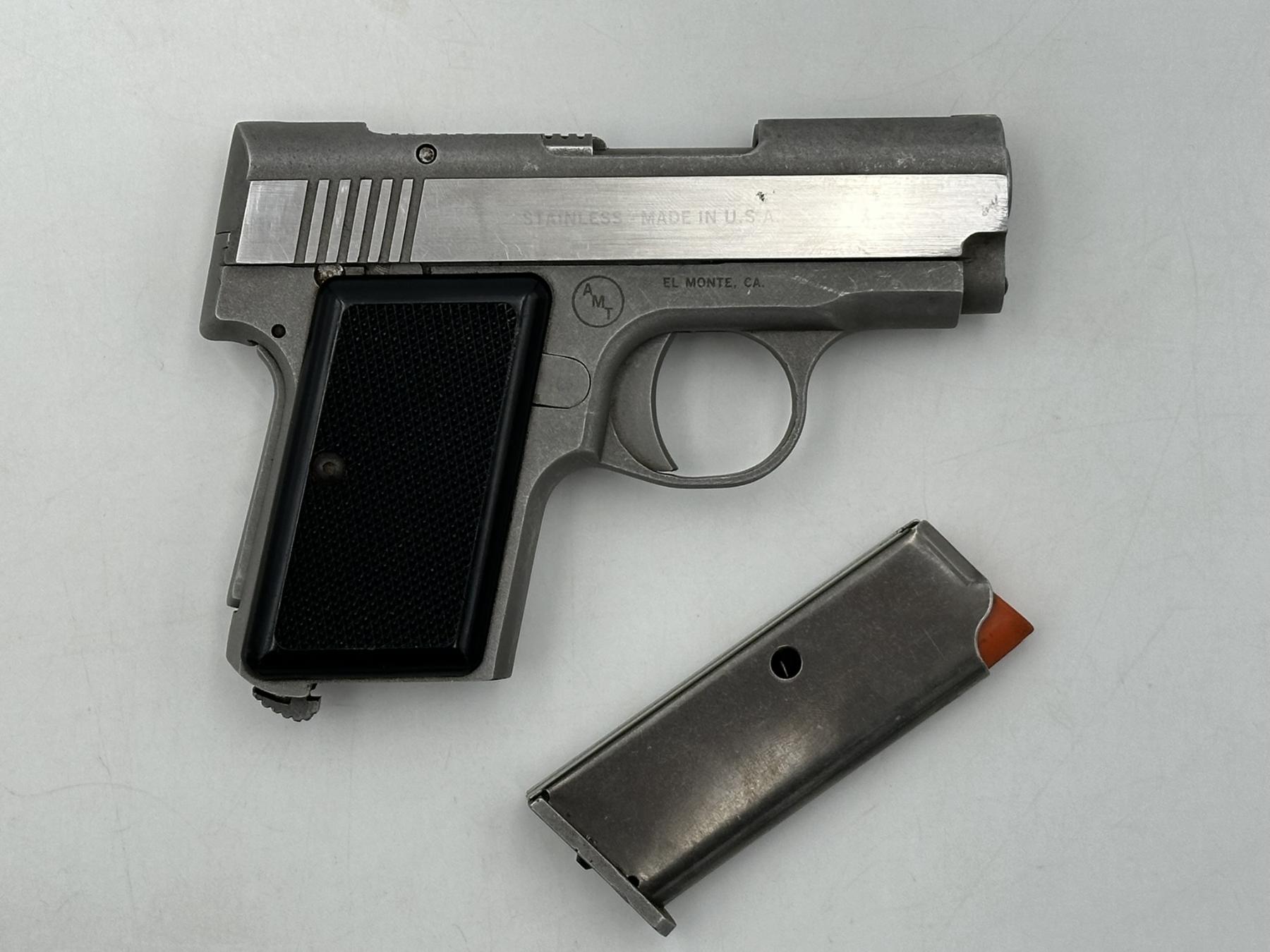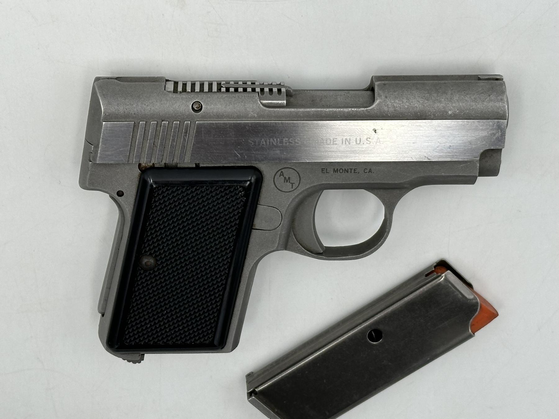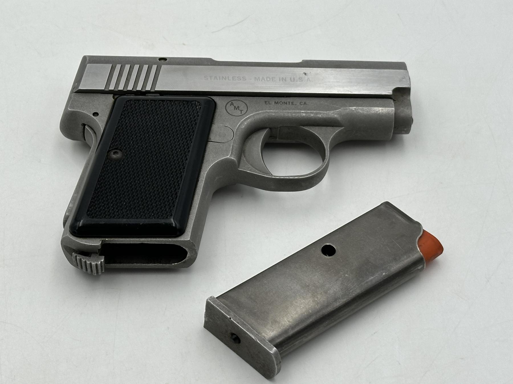 AMT Backup .380 ACP Pocket Pistol. Call to schedule inspection (330) 875-3185. We are closed Tuesdays and Wednesday. Winning bidders required to complete proper forms and background check. Person picking up firearm must show proper ID matching bidder account information.