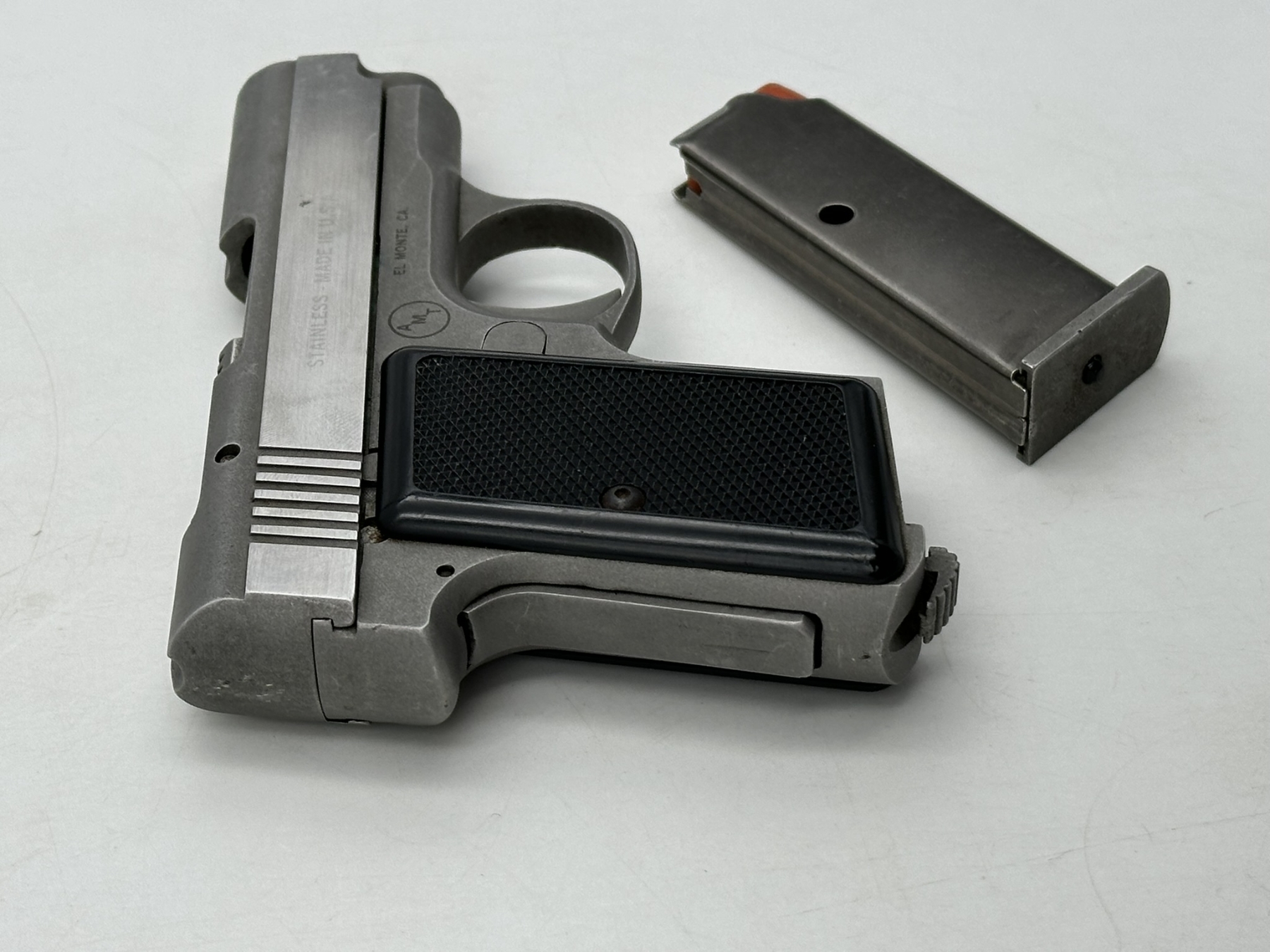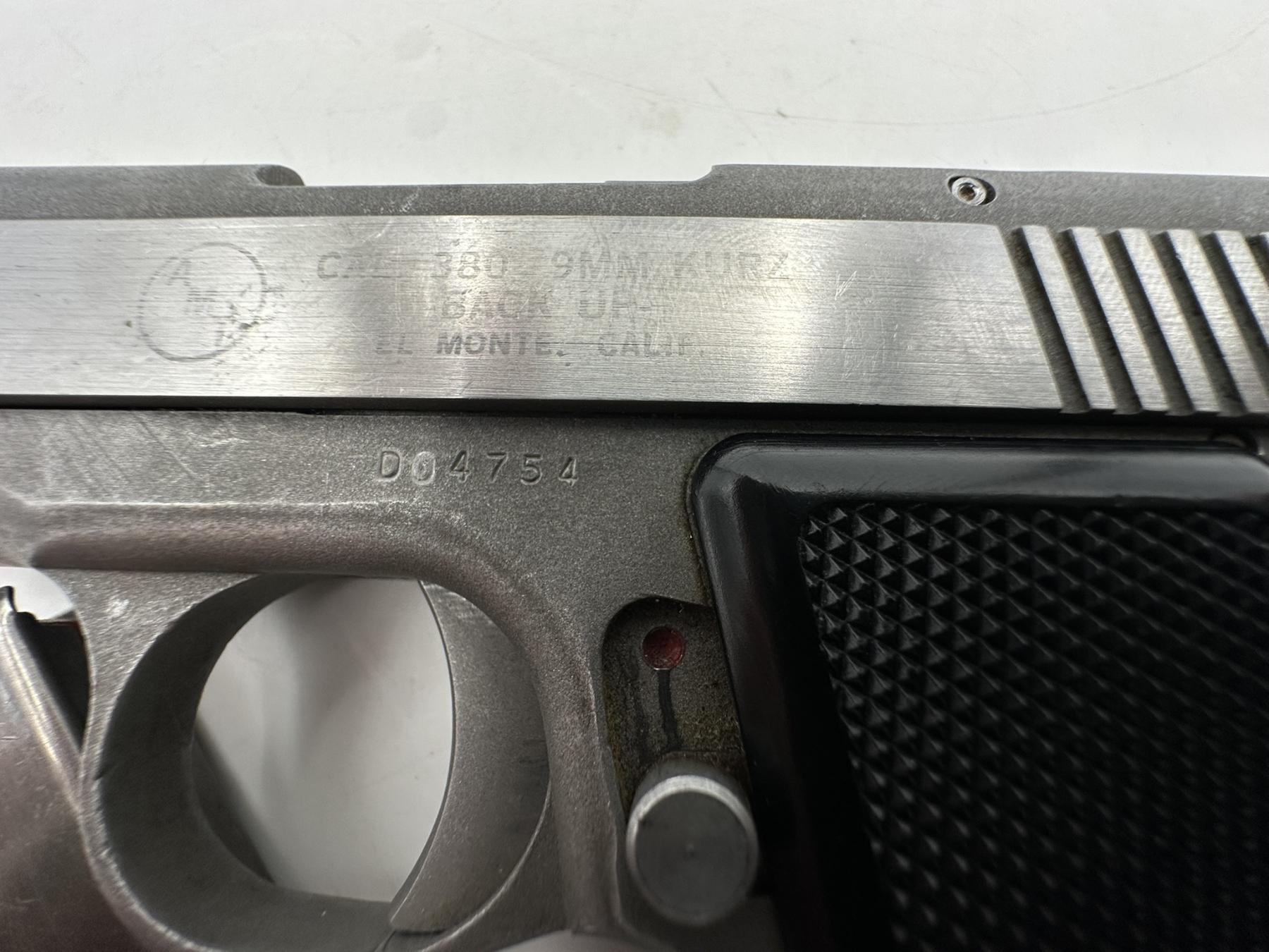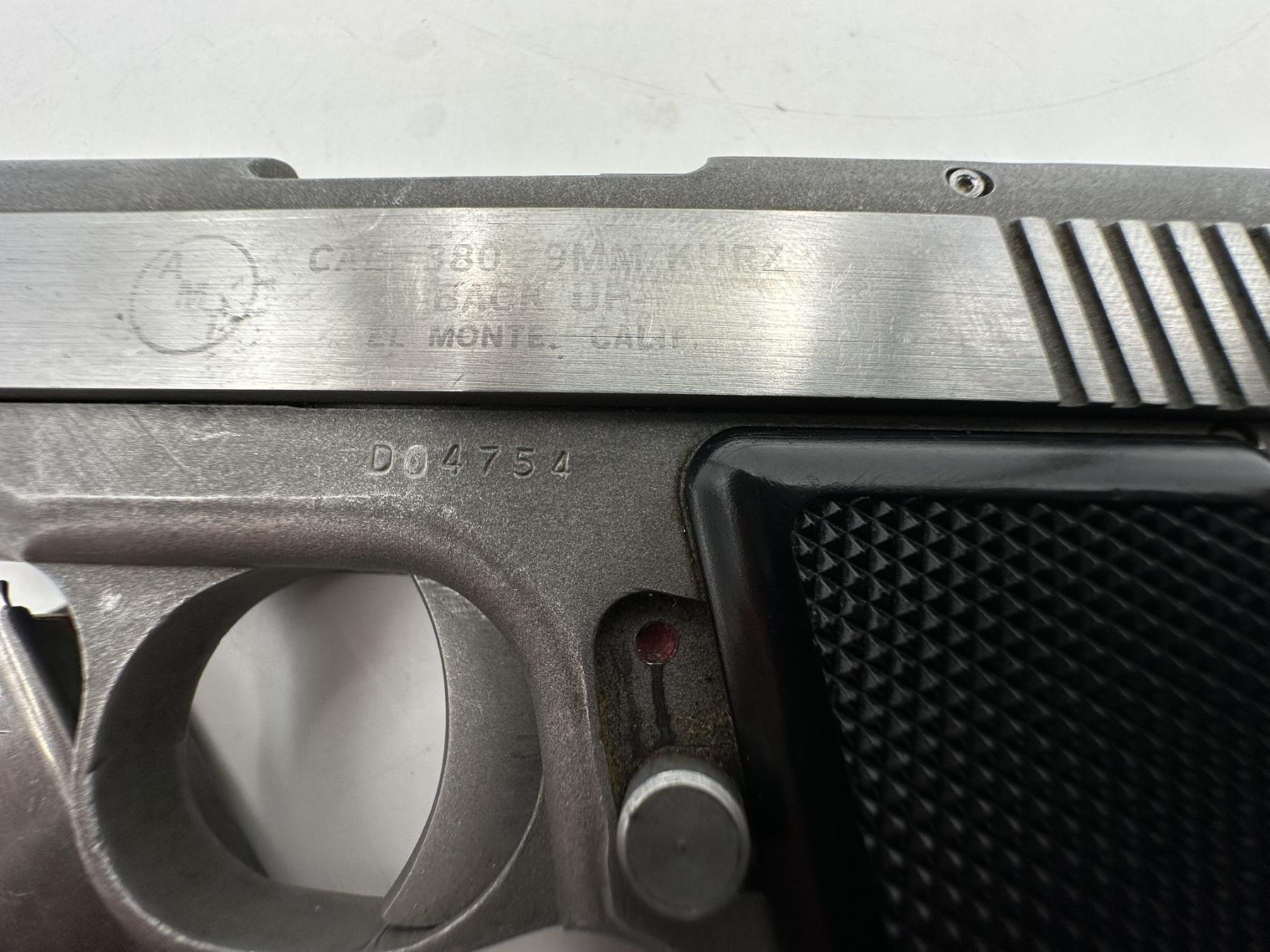 AMT Backup .380 ACP Pocket Pistol. Call to schedule inspection (330) 875-3185. We are closed Tuesdays and Wednesday. Winning bidders required to complete proper forms and background check. Person picking up firearm must show proper ID matching bidder account information.