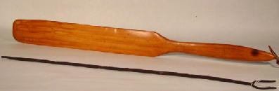 for fireplace cooking, together with an early 20th C. Wisconsin long handled wooden "shaper".