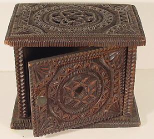 (said to be used to contain a metal inner box for hot "coals" but never used as such", found in southern U.S.A.