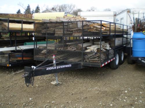 2004 ANDRUS SHOP BUILT 8ft. X 16ft. T/A BLACK LUMBER TRAILER, s/n 2902571 (REGISTRATION # 3850300): MISC LUMBER, LUMBER RACKS, PINTLE HITCH