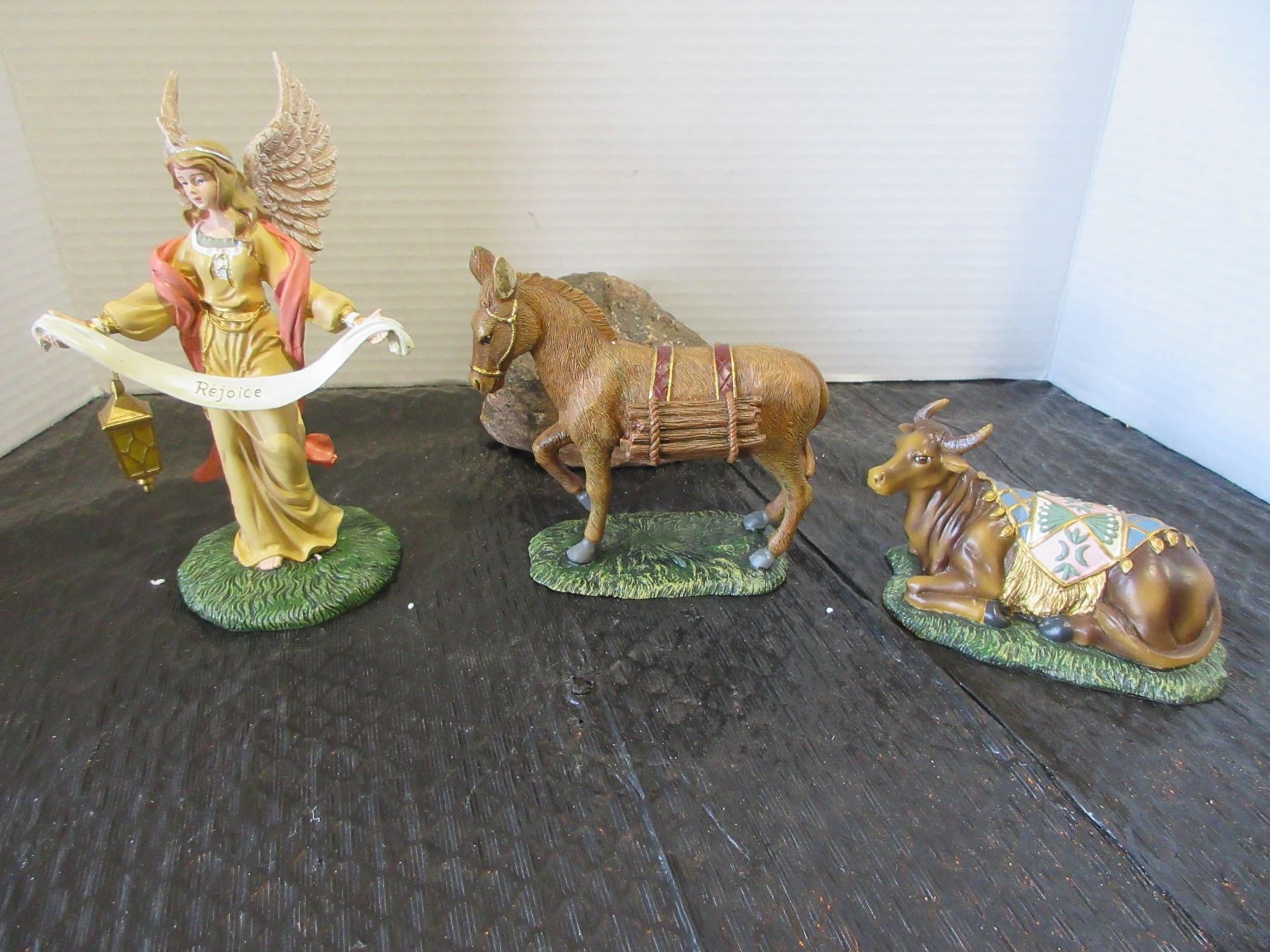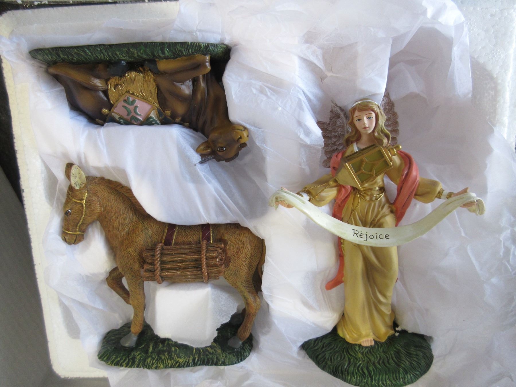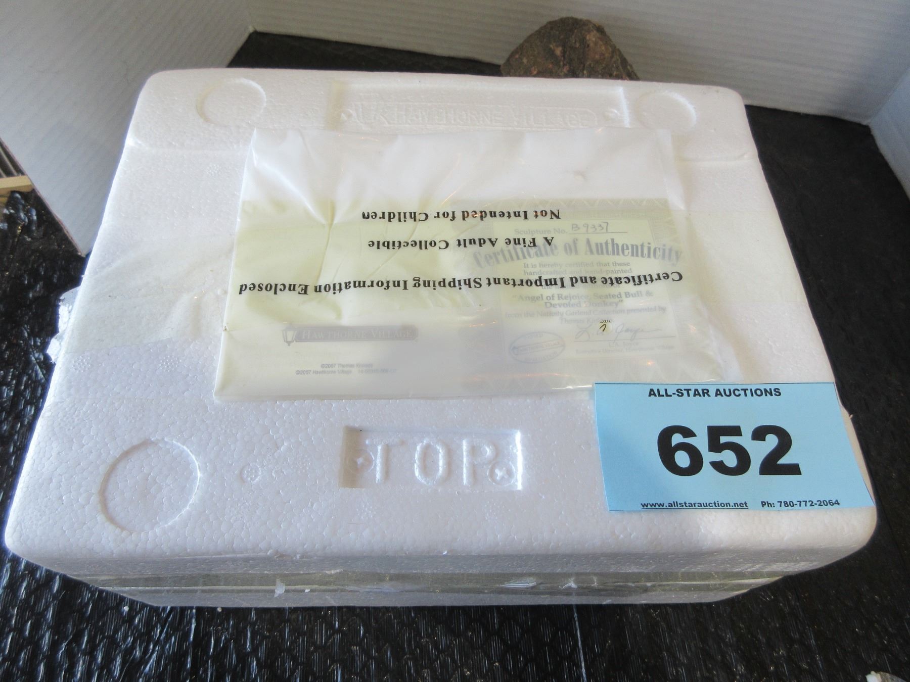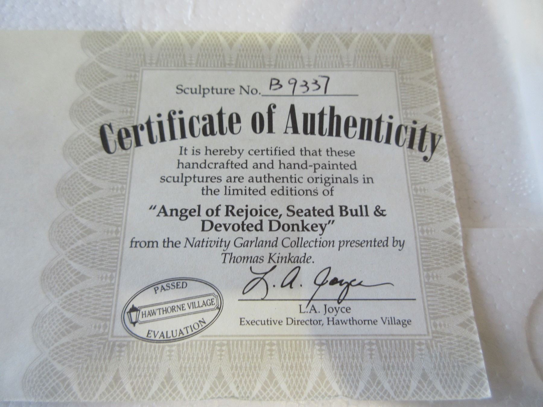 ANGEL OF REJOICE, SEATED BULL & DEVOTED DONKEY THOMAS KNKADE ORNAMENTS C/W CERTIFICATE