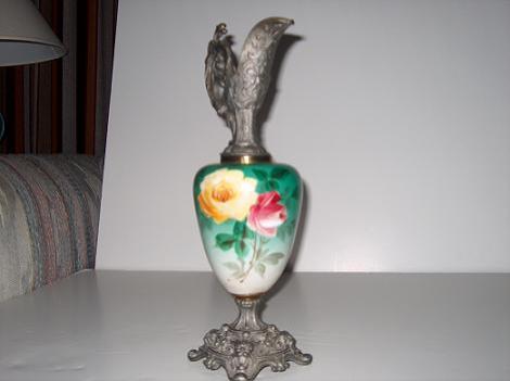 FACE IMAGES ON BASE AND SPOUT, FLOWERED URN, IN VERY GOOD CONDITION FOR ITS AGE