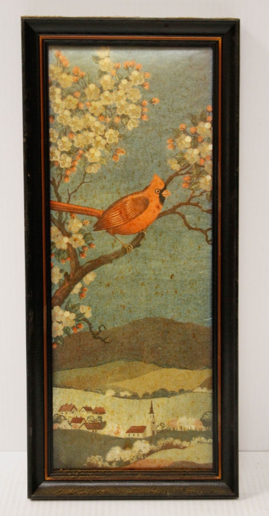 ANTIQUE ROBIN PAINTING METALLIC. 8 X 17