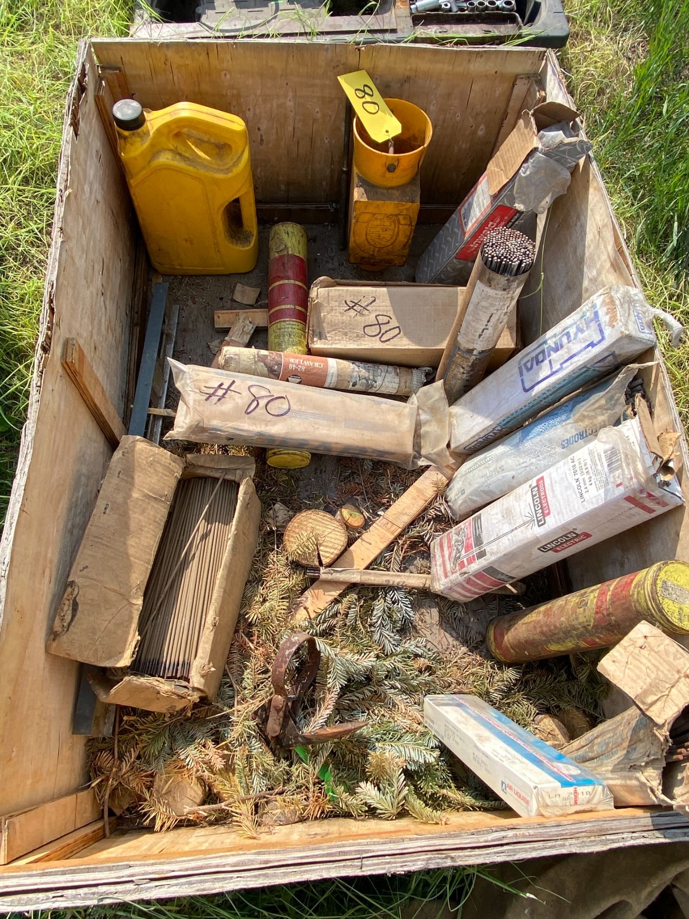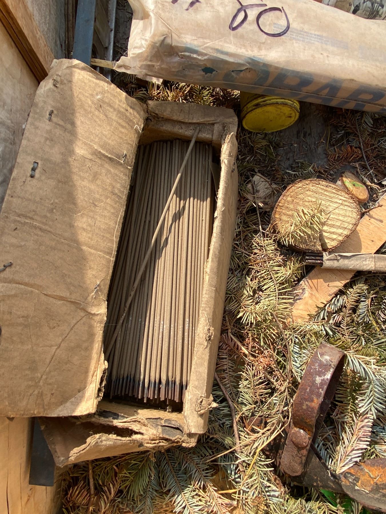 AP Container with a magnet for a Drill fill Auger, assortment of Welding Rods, level