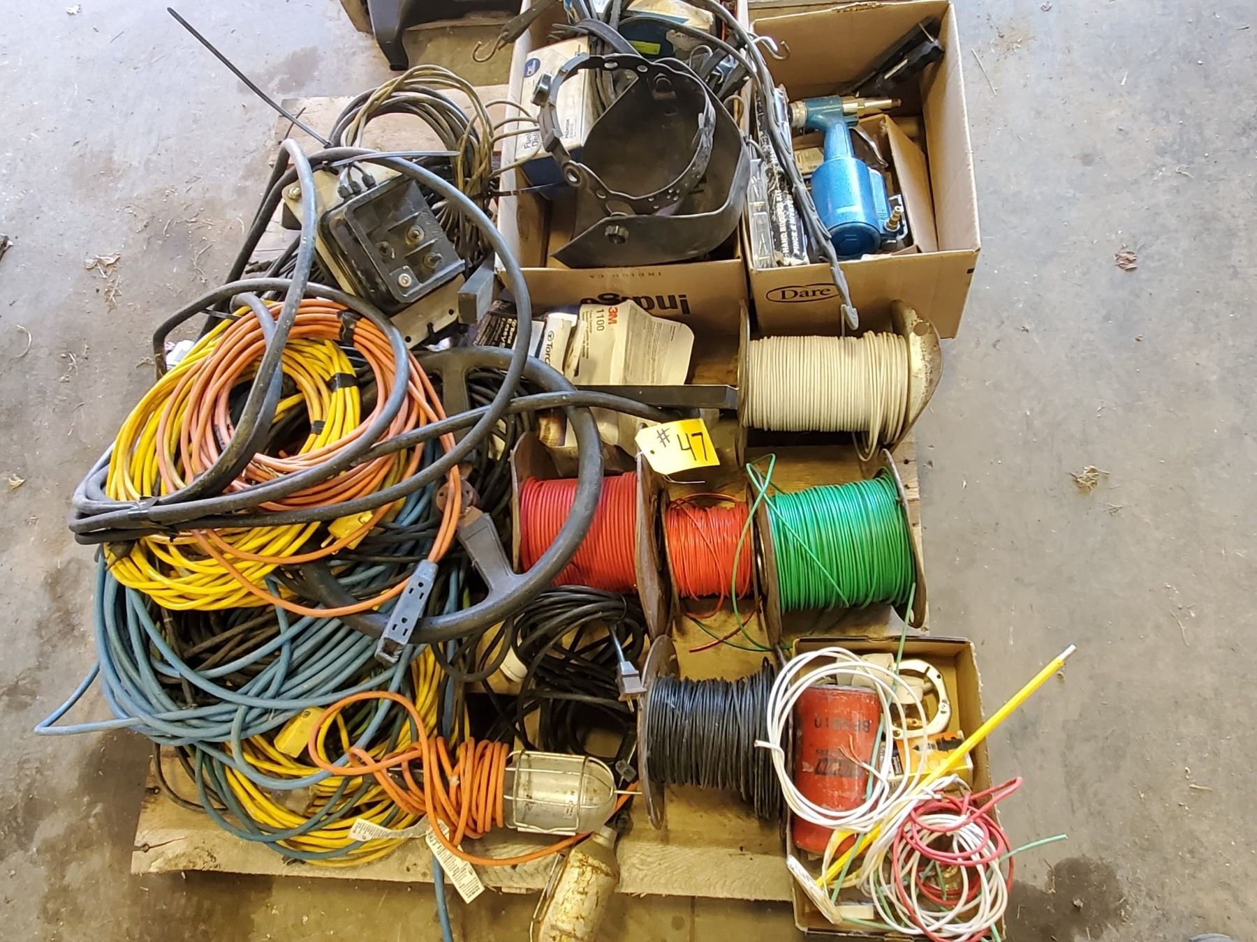 EAR PLUGS, APPROX. 5 SPOOLS OF WIRE, AIR RIBETER & HAND RIVETER; LOCATED OFF SITE - FROM RADWAY 7 KM EAST TO RR 200 THEN 3 KM NORTH - RIGHT SIDE; FOR MORE INFORMATION PHONE 780-650-1336 (DOUG)