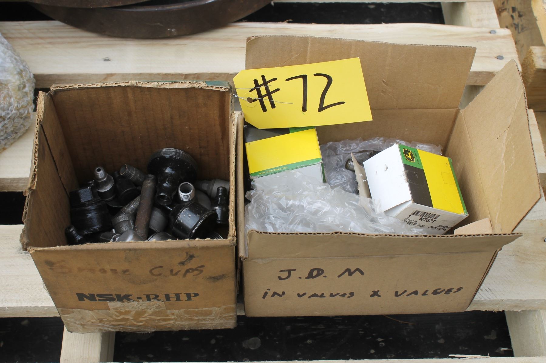 APPROX 14 - GREASE CUPS FOR STATIONARY ENGINES,JOHN DEERE INTAKE VALVES & MISC OTHER PARTS