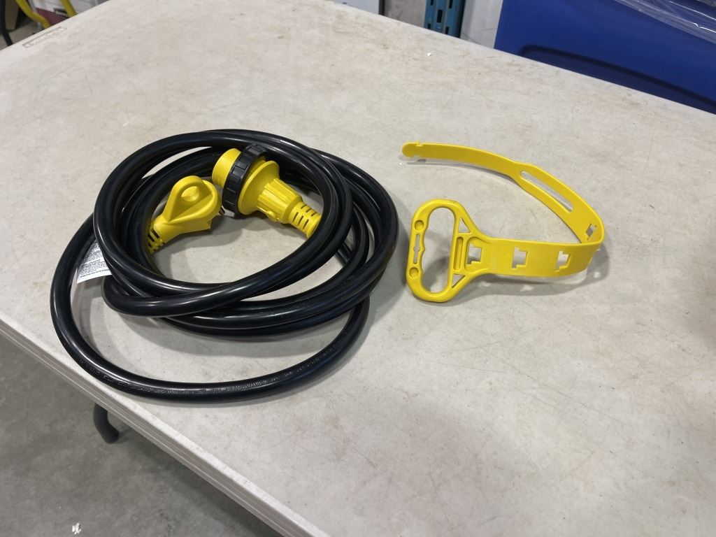 AS NEW 15FT 30AMP RV CABLE WITH TWIST LOCK CONNECTOR